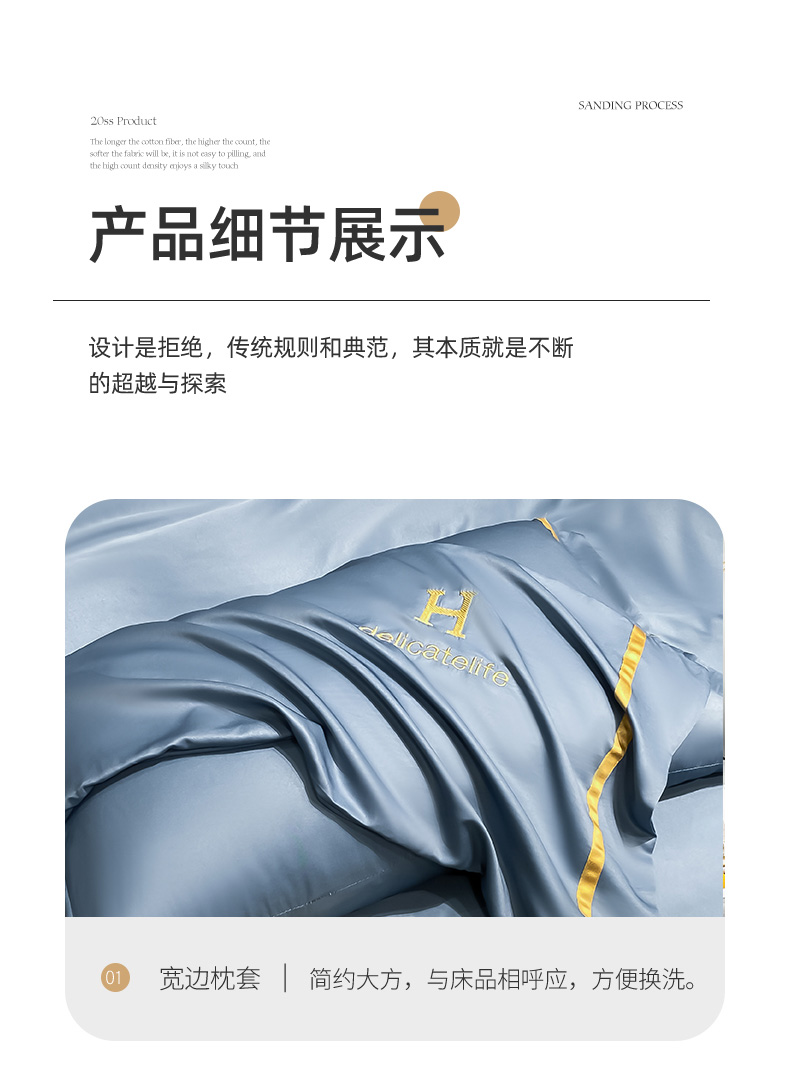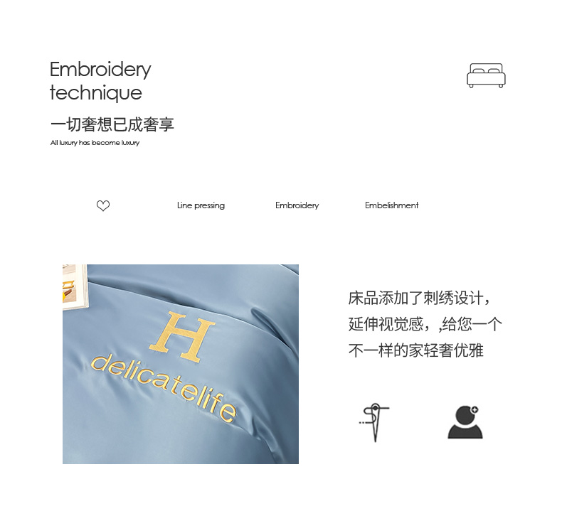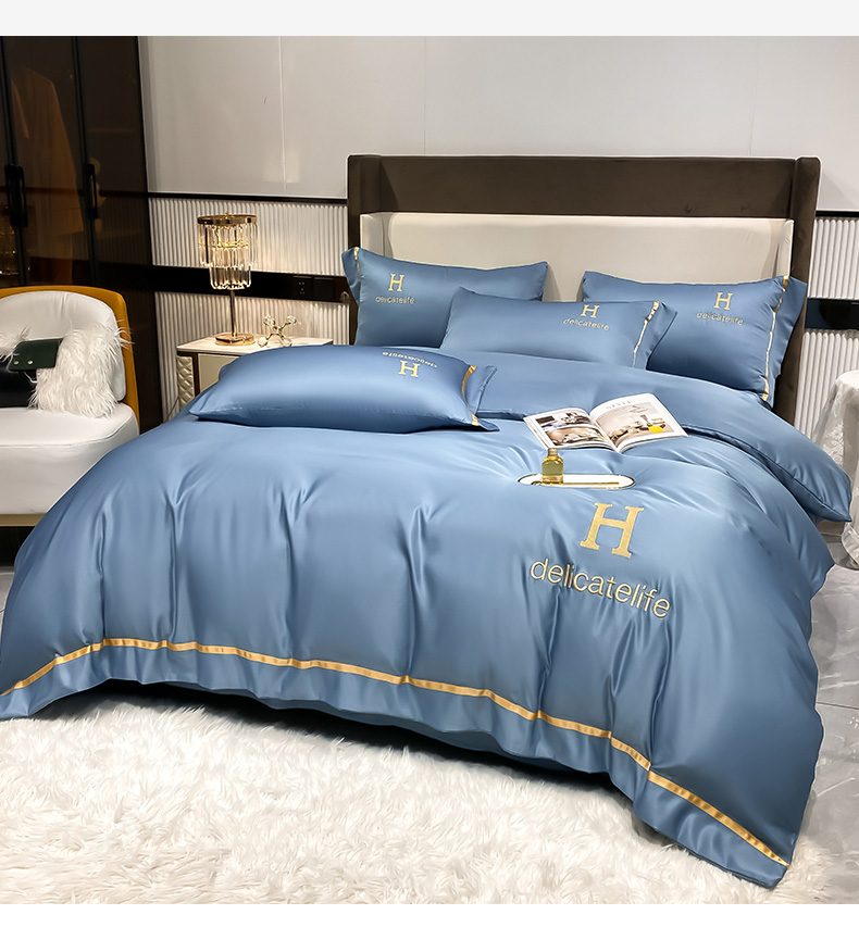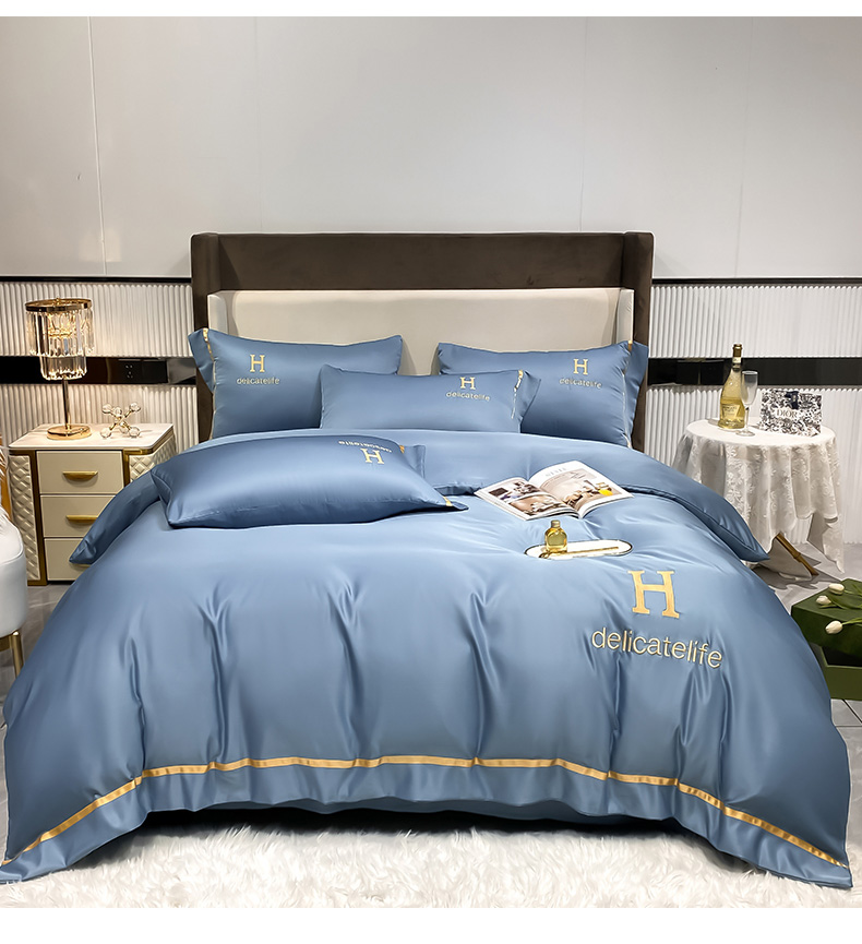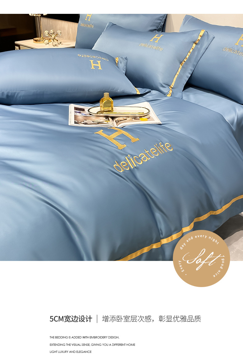 商品名称:绒掌柜2023水洗真丝天丝冰丝刺绣四件套-H系列 H-宾利蓝