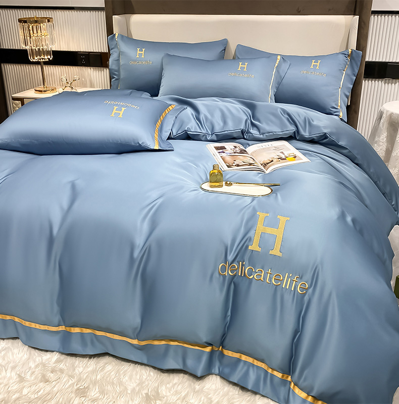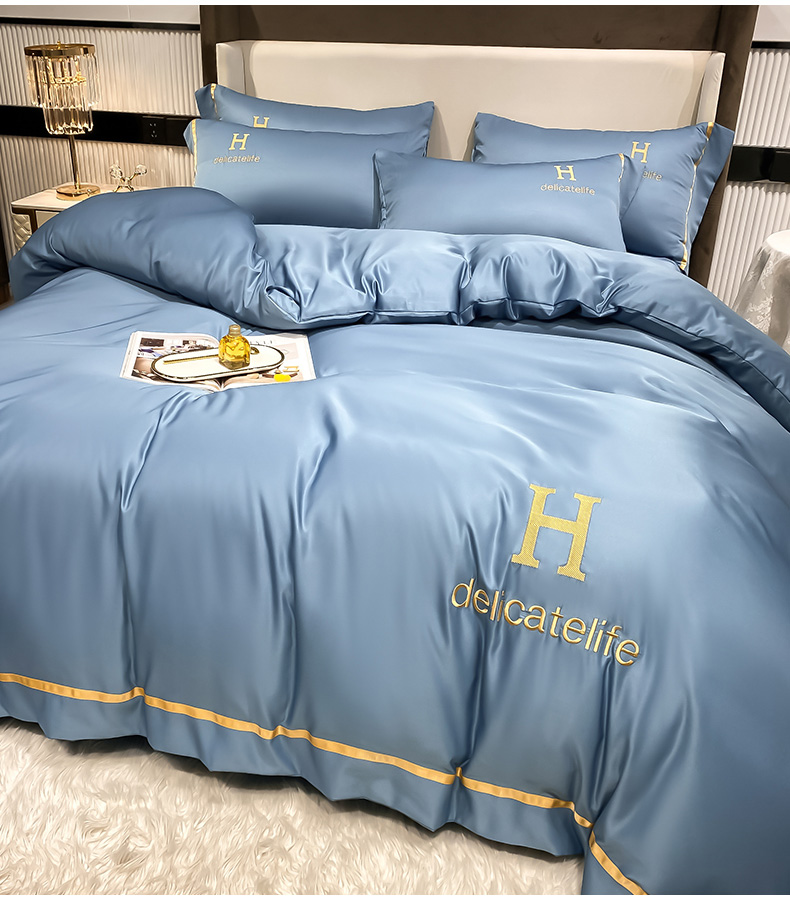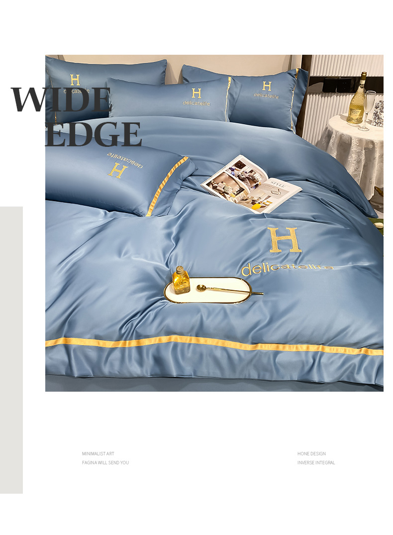 绒掌柜2023水洗真丝天丝冰丝刺绣四件套-H系列 H-宾利蓝
