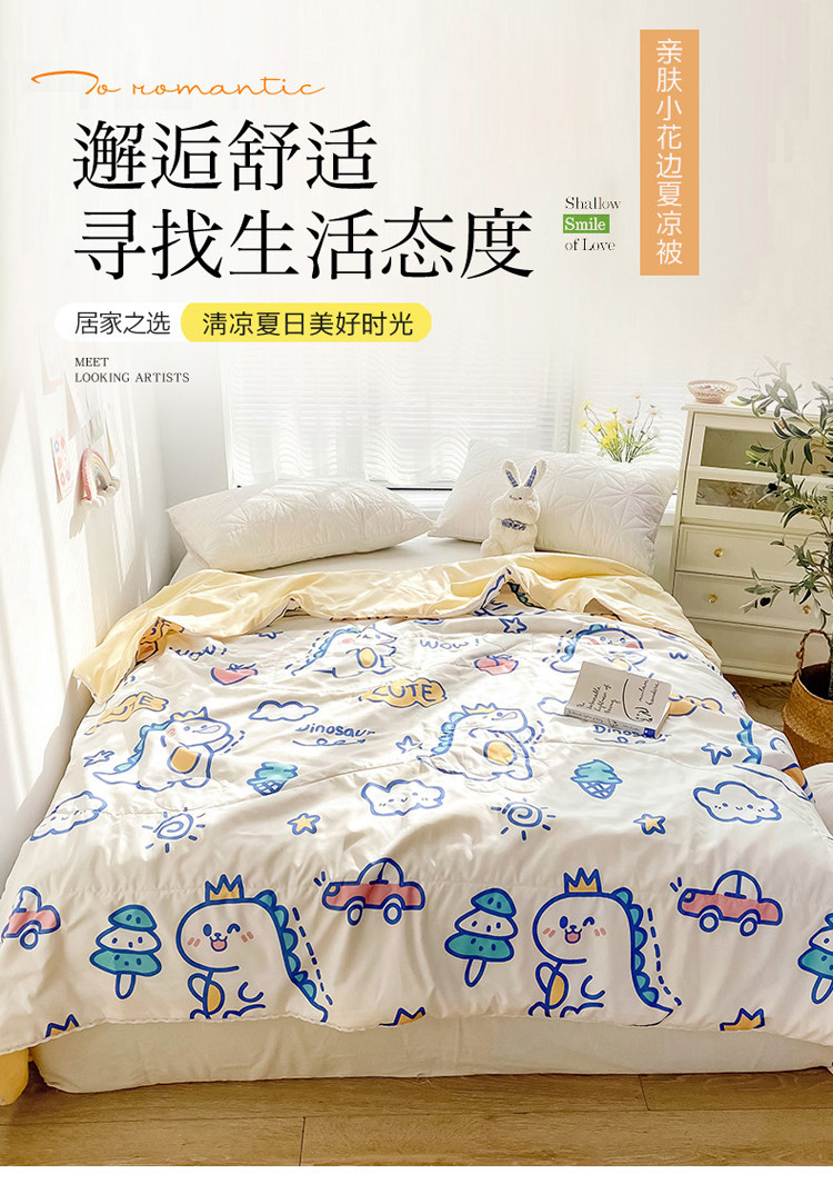 商品名称:寐居 2022新款亲肤小花边水洗棉单夏被 恐龙乐园