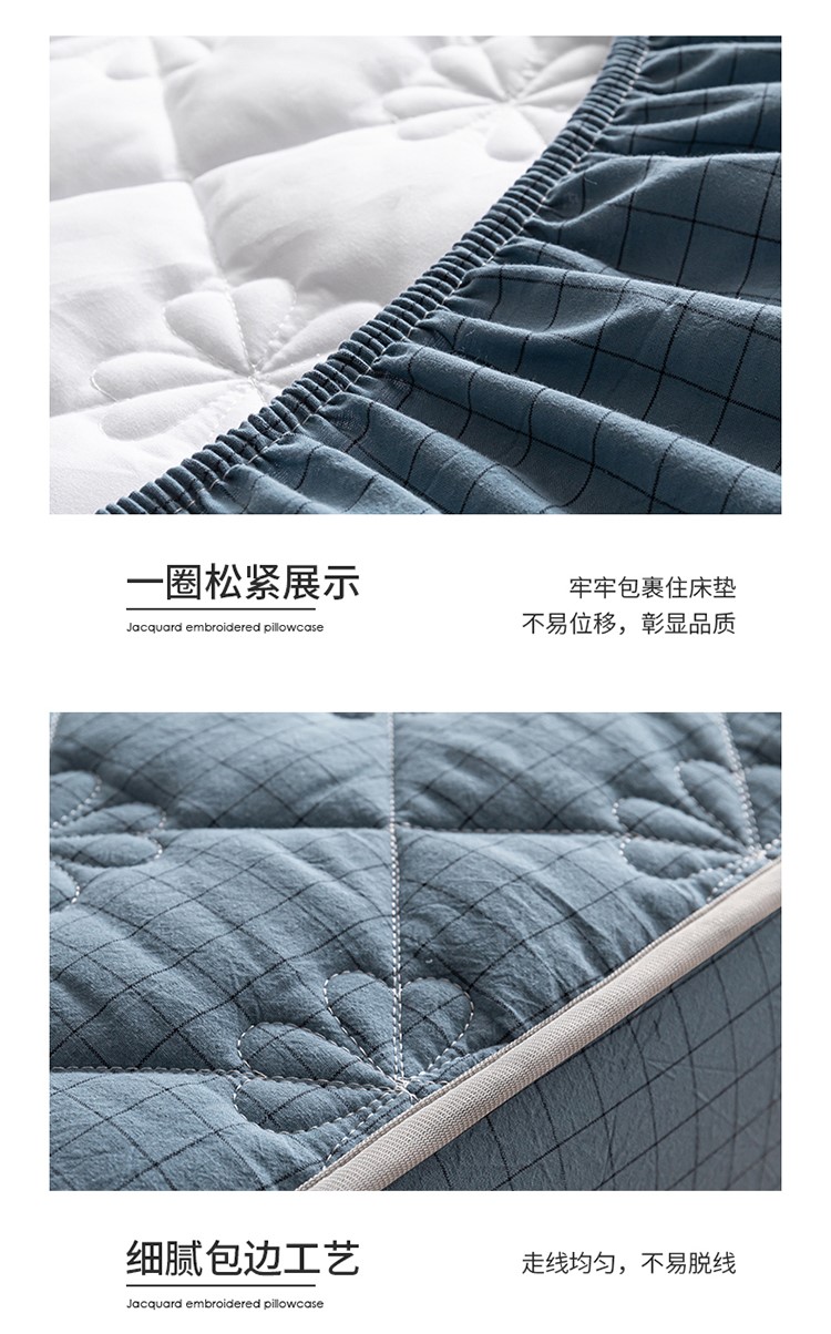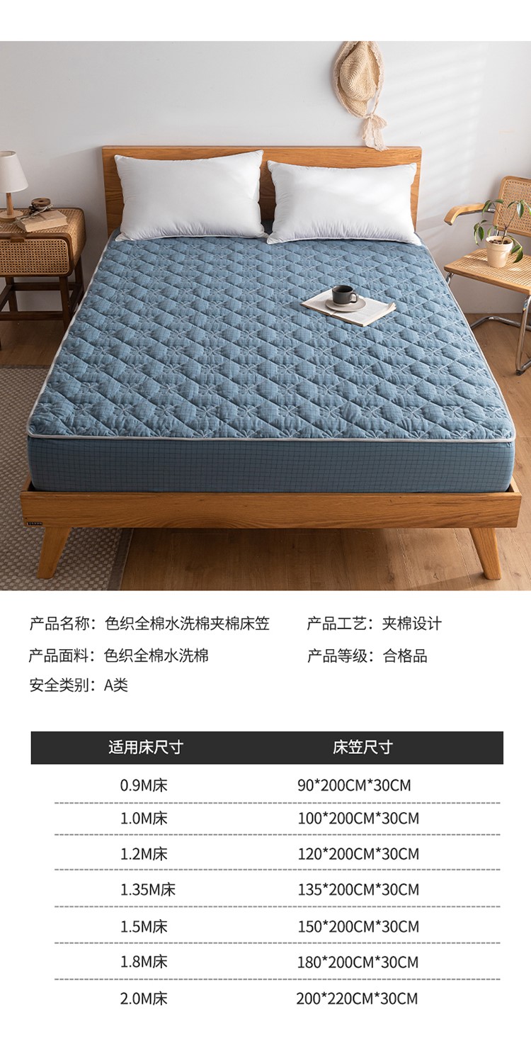 商品名称:东宇 2022新款色织全棉水洗棉夹棉床笠 灰蓝小方格
