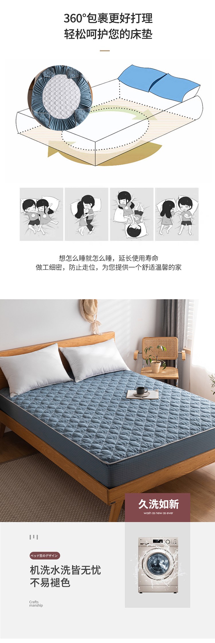 (总)东宇床垫 2025新款亲肤水洗棉夹棉床笠,星辰白,星辰灰,星辰驼,远山白,远山灰,远山驼