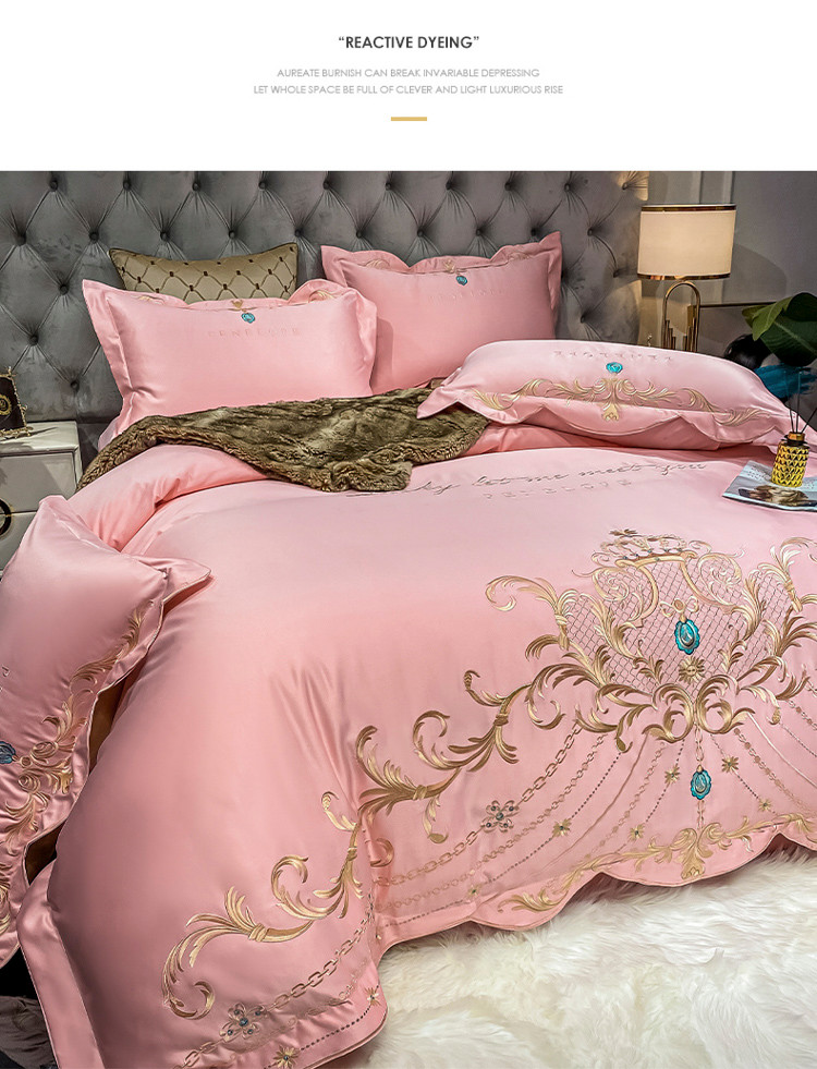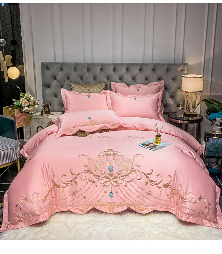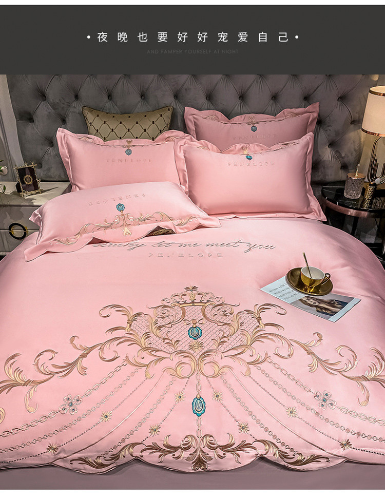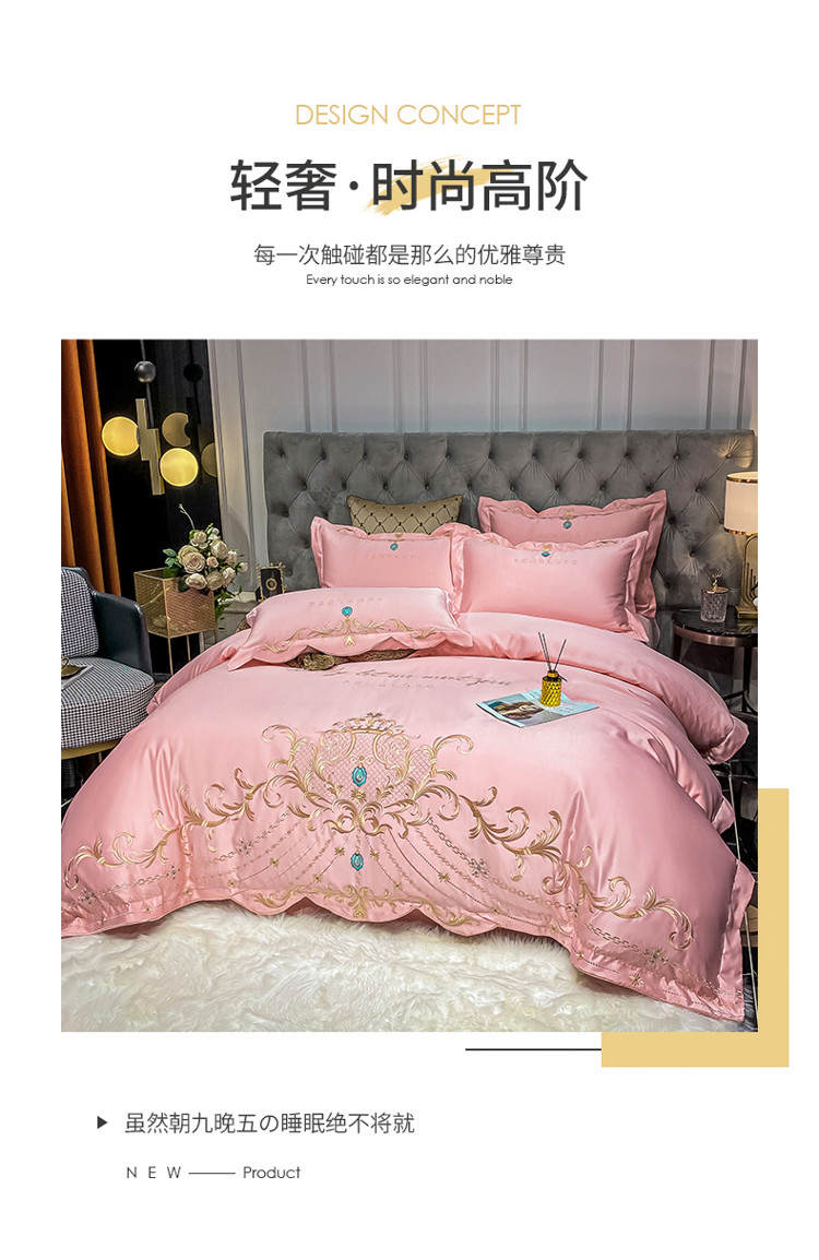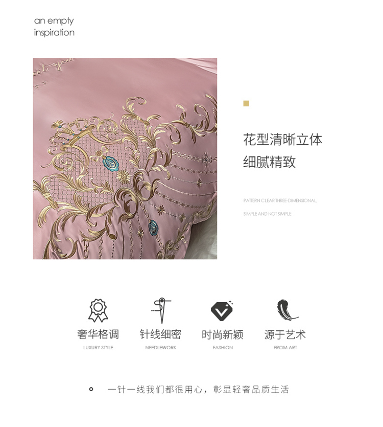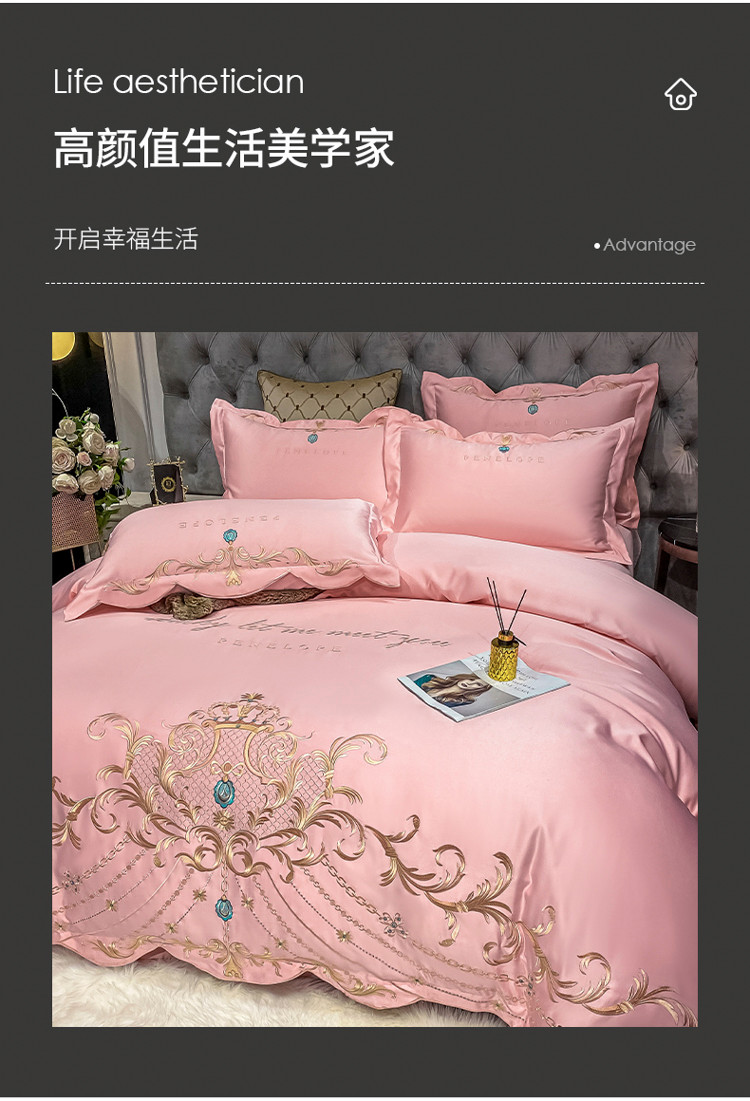 (总)欧乐蒂 2025新款欧式水洗贡缎全棉刺绣四件套-欧雅终版,宾利蓝,玉色,白色,粉色,豆沙,酒红,香槟,高级灰
