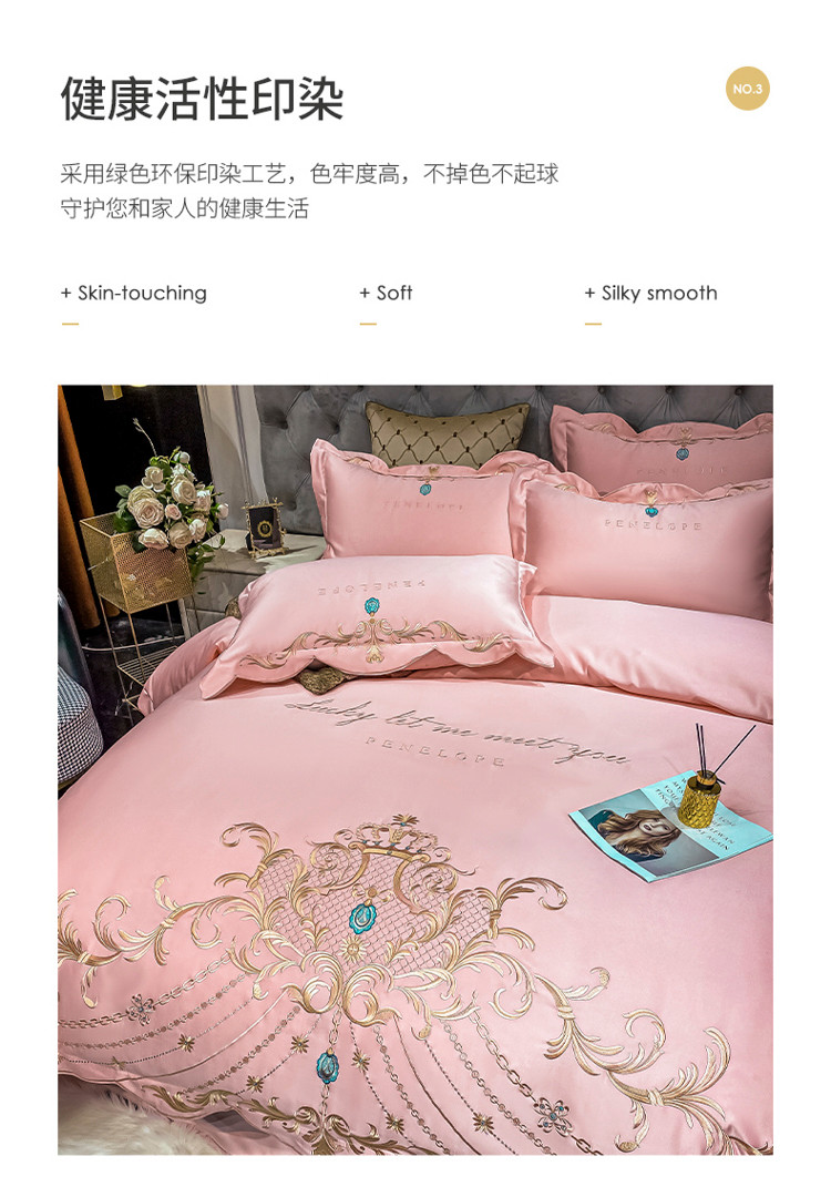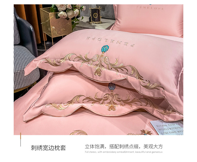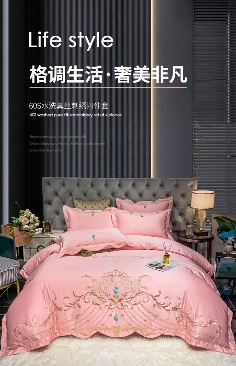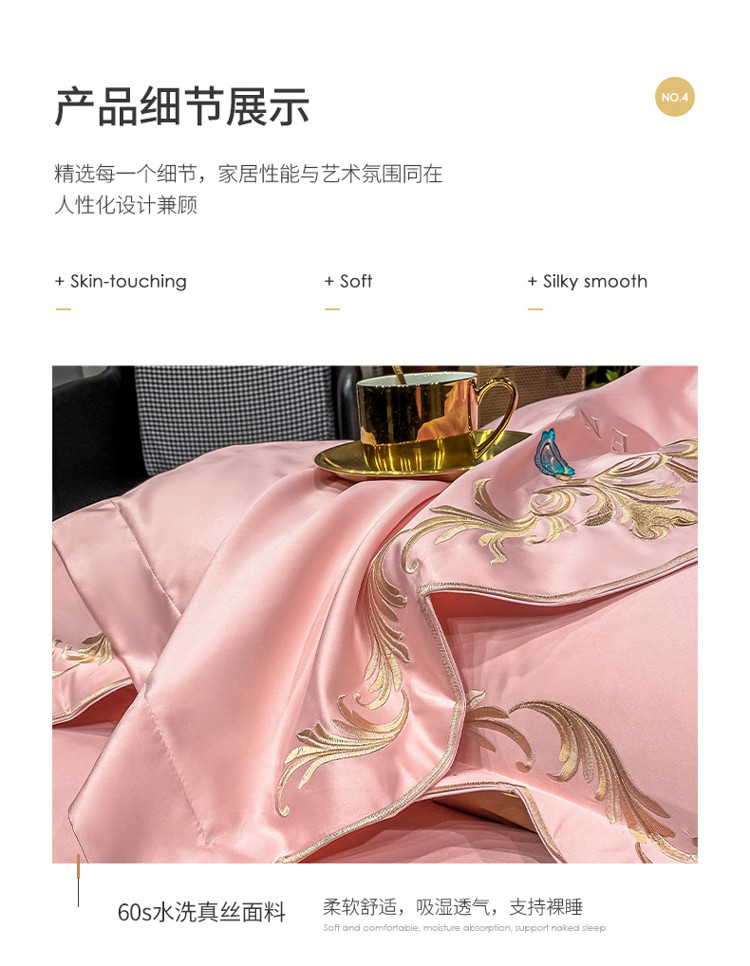 商品名称:欧乐蒂 2022新款A版60支水洗真丝B版纯棉四件套欧雅 欧雅-粉色