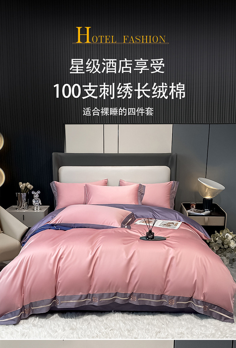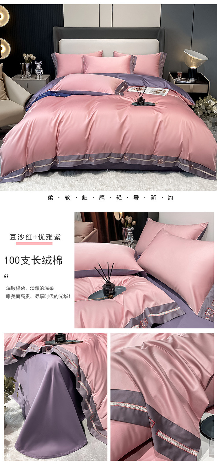 (总)瑞驰家纺 长绒棉绣花四件套-锦瑟,豆沙红,宫廷黄,极光红,金属咖,魅影蓝,藕粉,圣女紫,松绿,香芋紫
