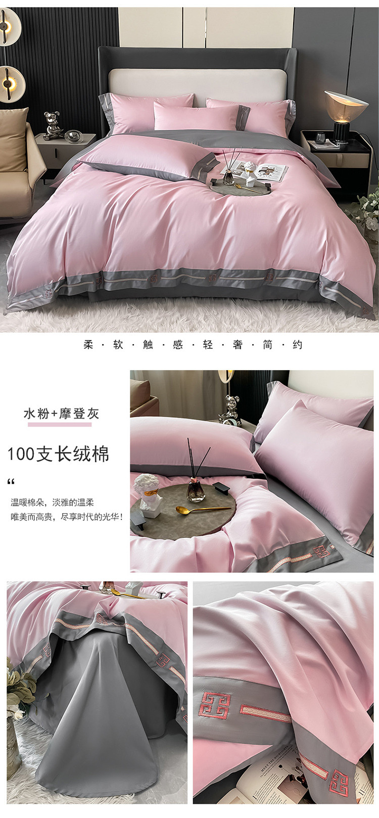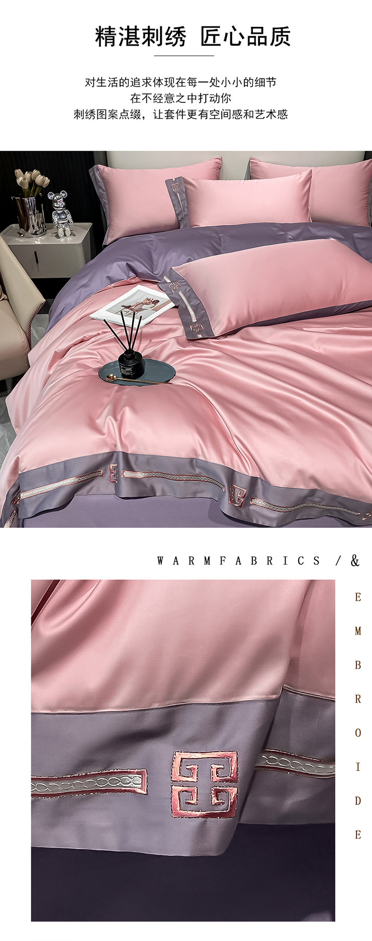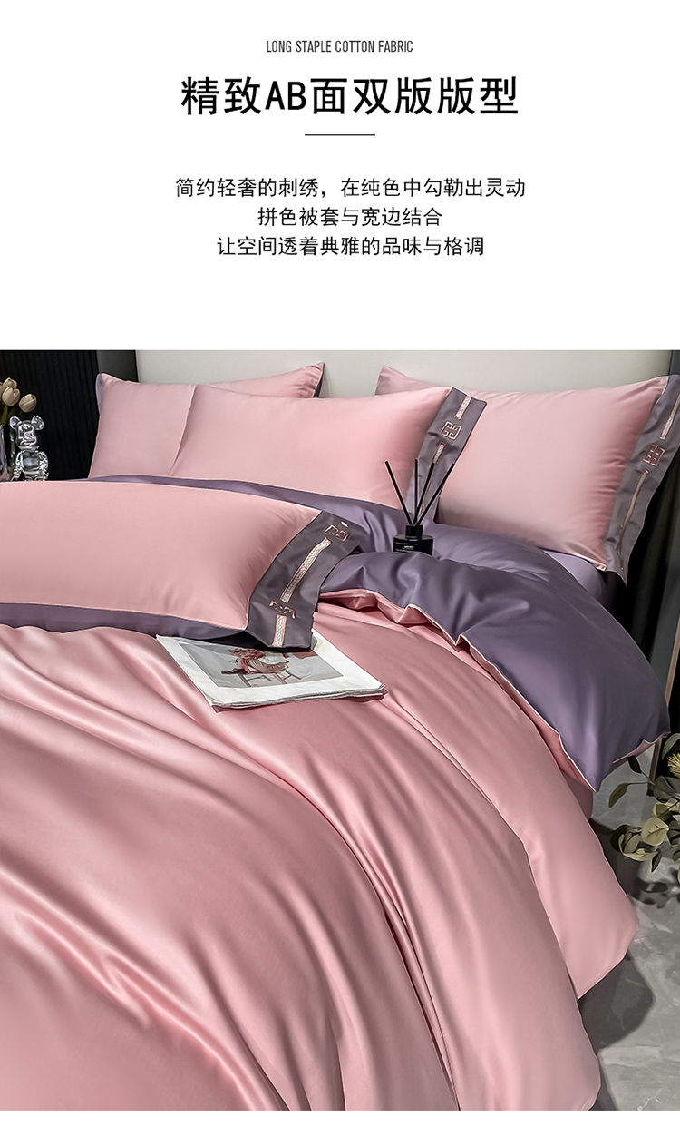 (总)瑞驰家纺 2022新款100S长绒棉绣花-爱德拉系列,豆沙红+优雅紫,摩登灰+深海蓝,柠檬黄+摩登灰,清水绿+摩登灰,时尚桔+摩登灰,水粉+摩登灰,象牙白+摩登灰,优雅紫+豆沙红