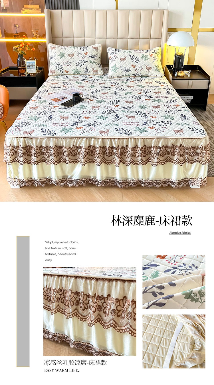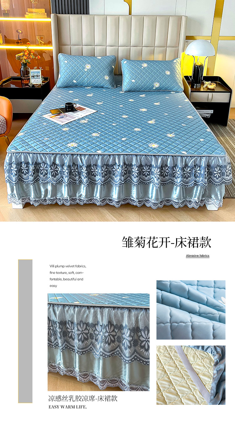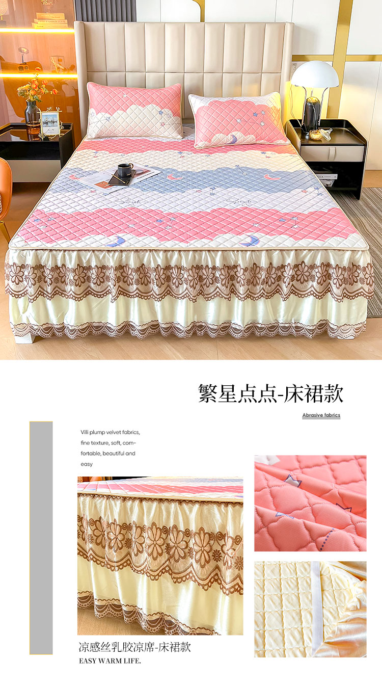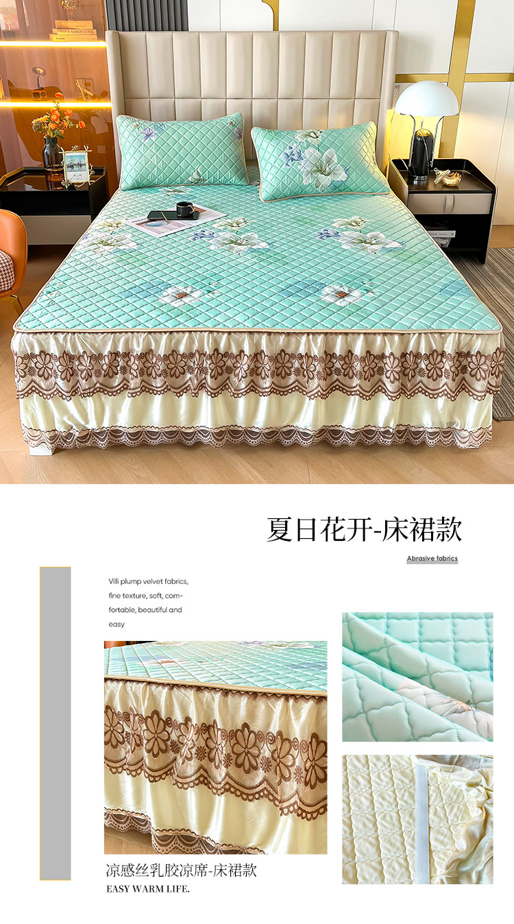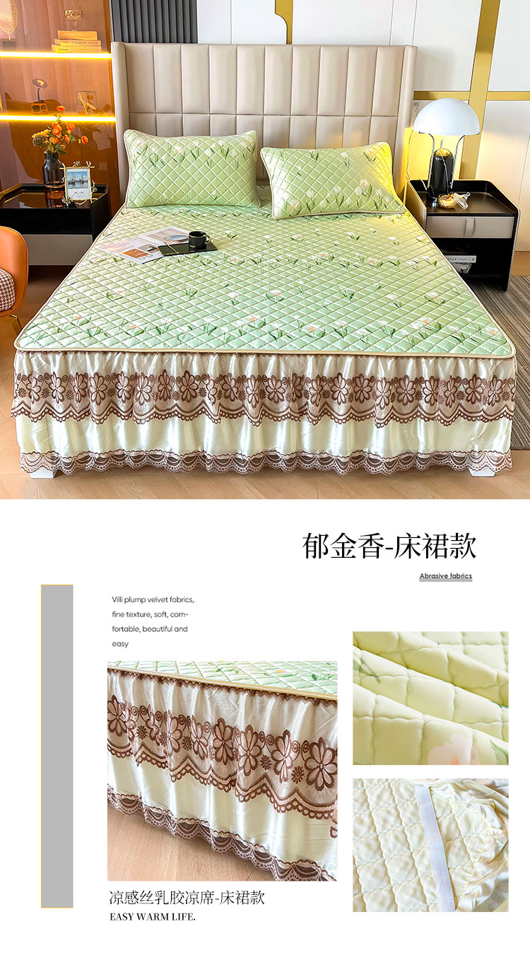 (总)锦罗绣 2024新款水洗乳胶凉席床裙凉席夏被四件套