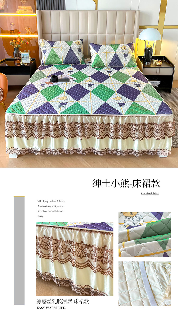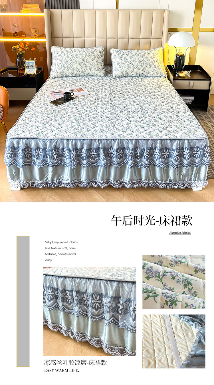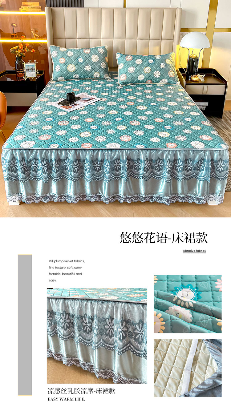 商品名称:(总)锦罗绣 2024新款水洗乳胶凉席床裙凉席夏被四件套