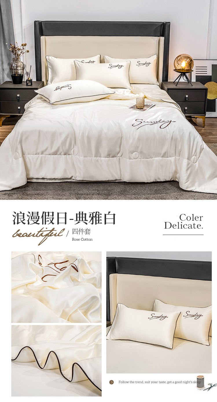 当前位置: 91家纺网 > 商品网购 > 床品套件 > 四件套 > 夏被四件套 > 骏腾 2022新款水洗真丝夏被四件套水洗天丝床笠三件套 浪漫假日-典雅白