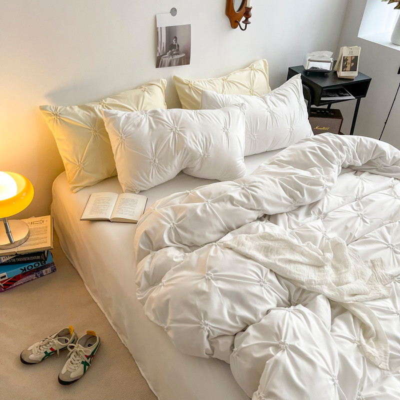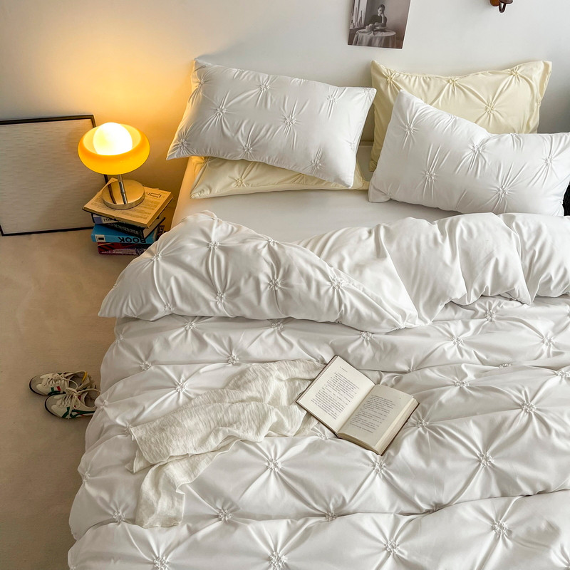 当前位置: 91家纺网 > 商品网购 > 床品套件 > 四件套 > 水洗棉四件套 > 千希家纺 2022网红韩版公主风三件套工艺扭花水洗棉磨毛四件套 玛奇朵-贵族白