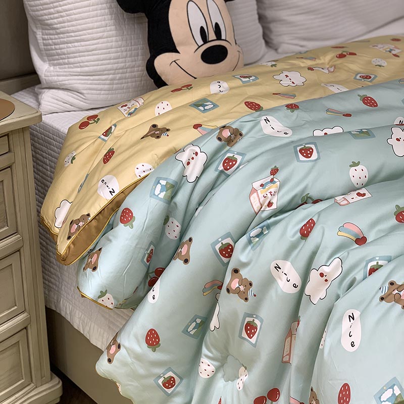 (总)汇庭 2025新款秋冬胖胖樱桃春秋被+樱桃菲菲床盖三件套,组合图下单仅供展示不可下单,粉色,绿色,米色