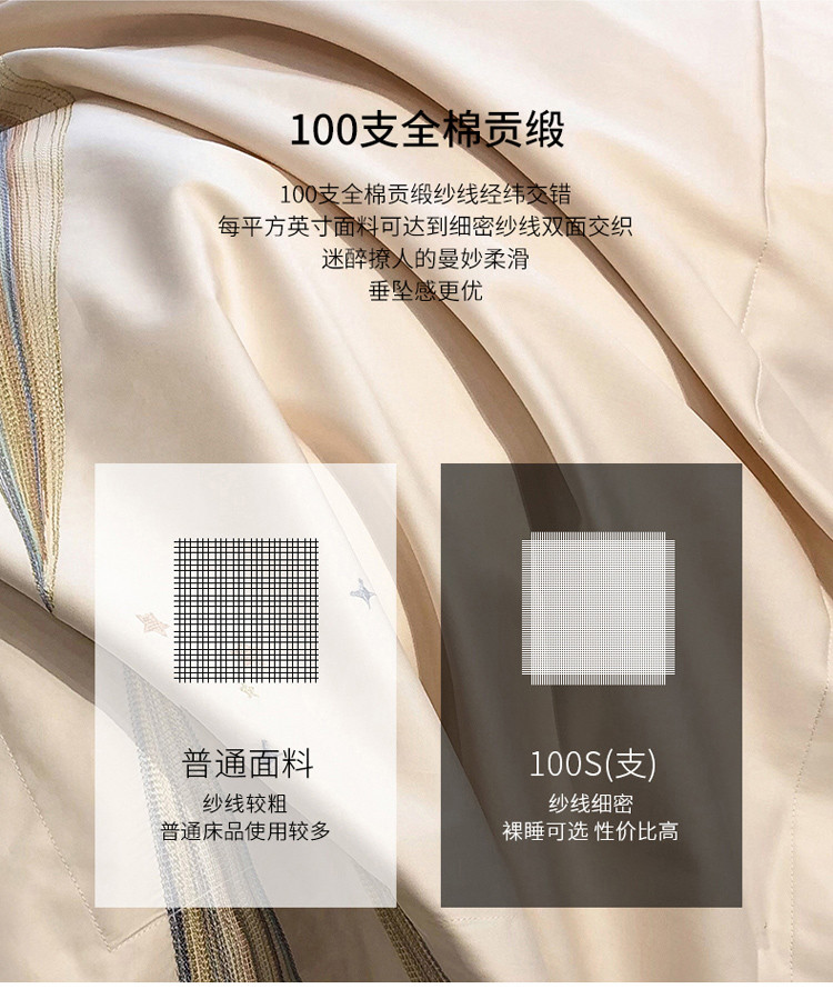 爱缦 2022新款100支长绒棉四件套-星彩系列 奶油白