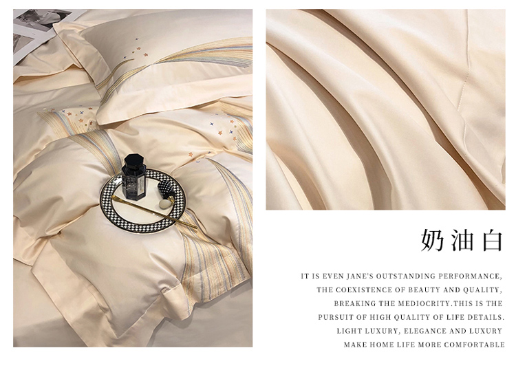 商品名称:爱缦 2022新款100支长绒棉四件套-星彩系列 奶油白