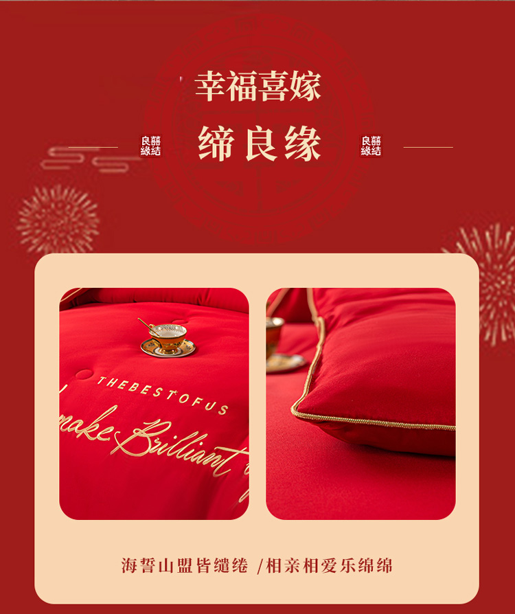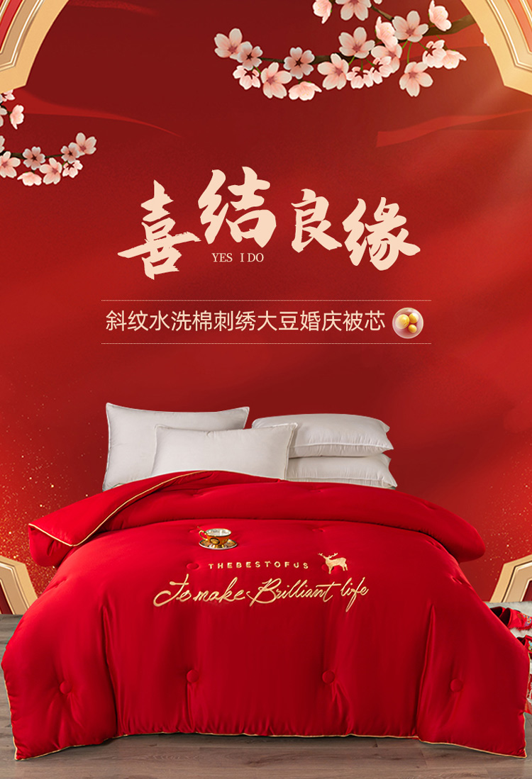 (总)壹张床2025新款婚庆水洗棉大豆冬被,大喜日子
