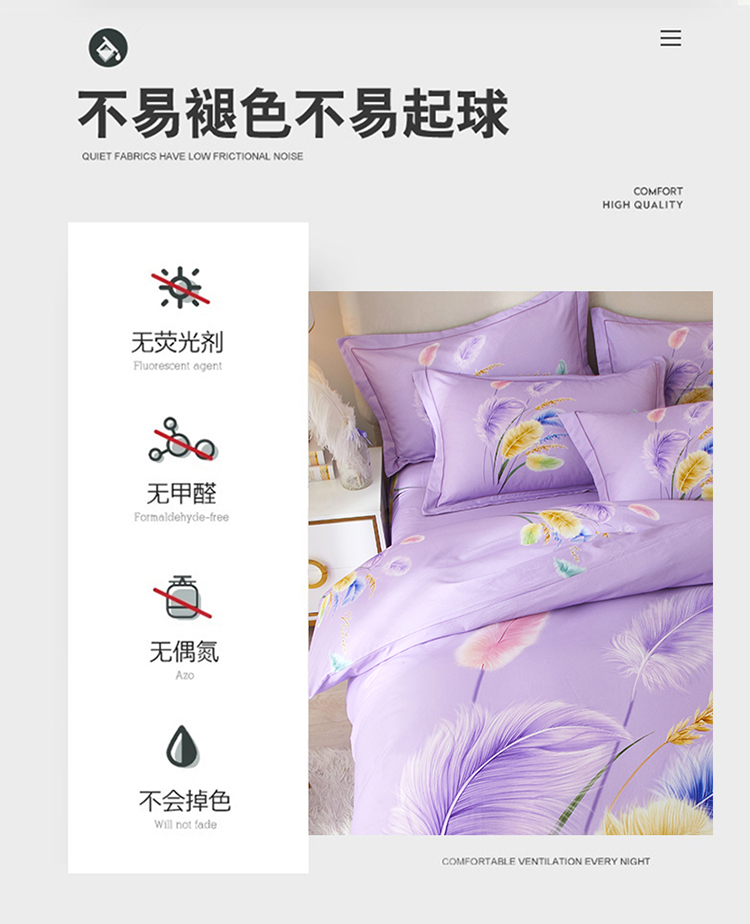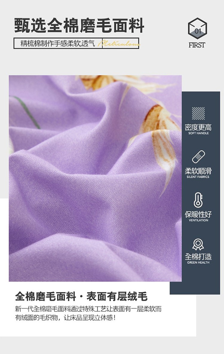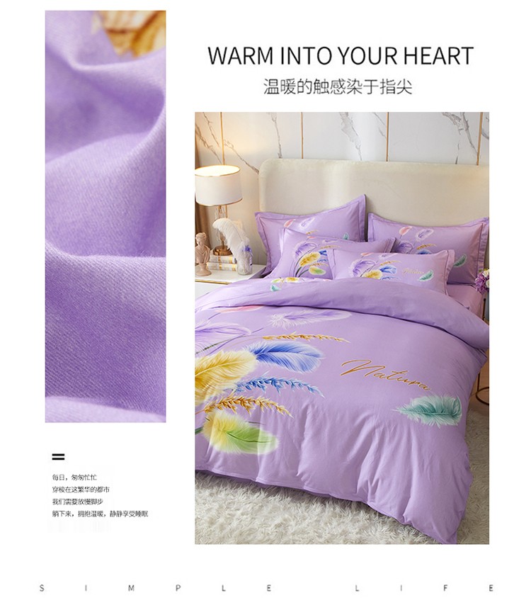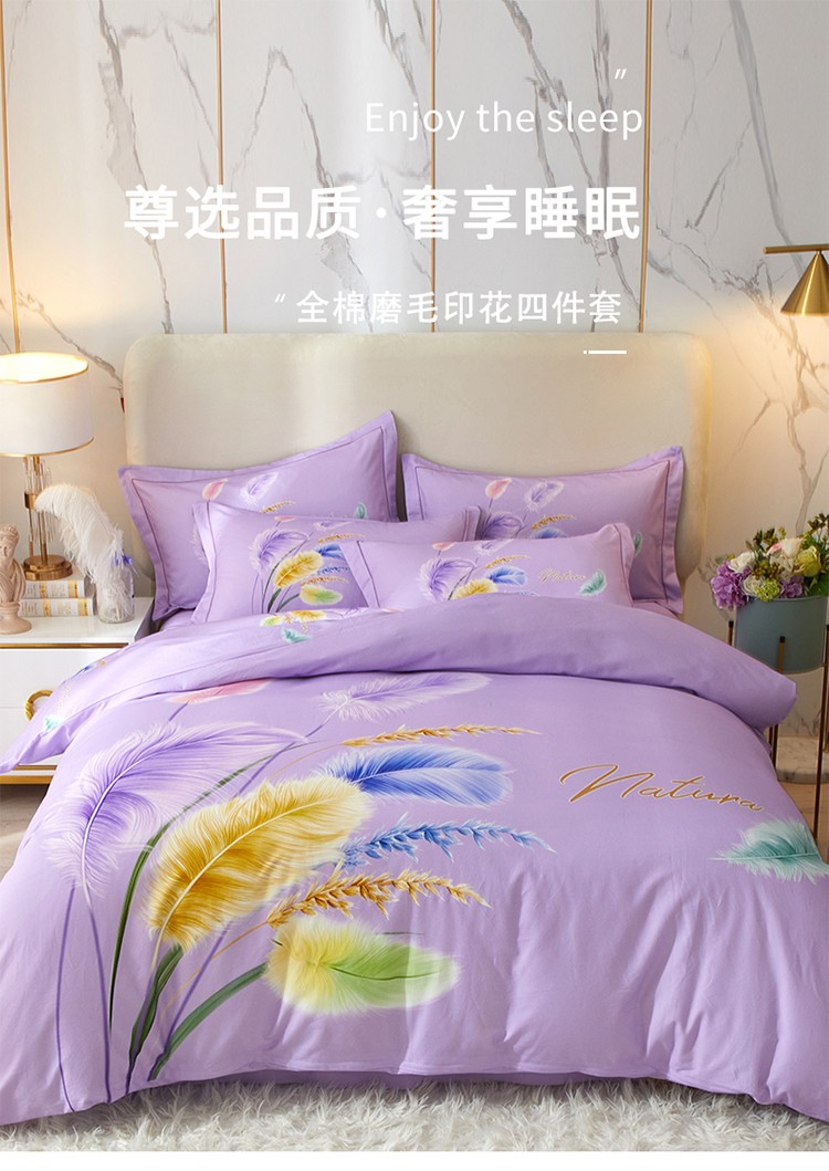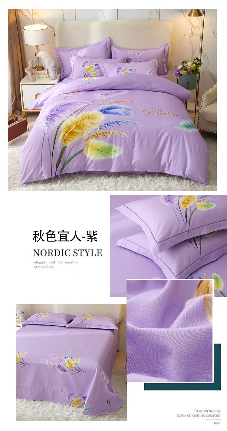 商品名称:金纱玉纺2022新款全棉生态大版磨毛四件套 秋色宜人-紫