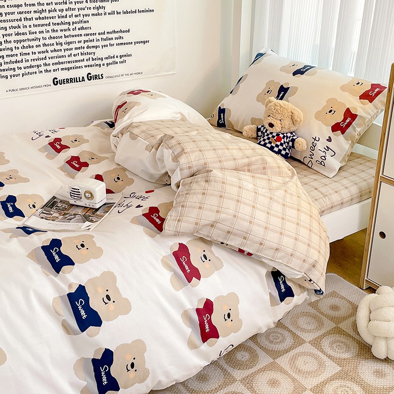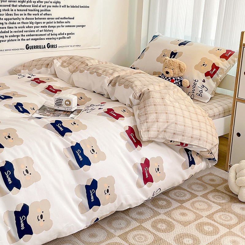 (总)昔可 2023新款学生季卡通普通款四件套,彩色气球熊,彩条恐龙,憨憨熊,花蜜小兔,蘑菇兔,圈圈草莓,蔬菜小兔,郁金香小萌狗