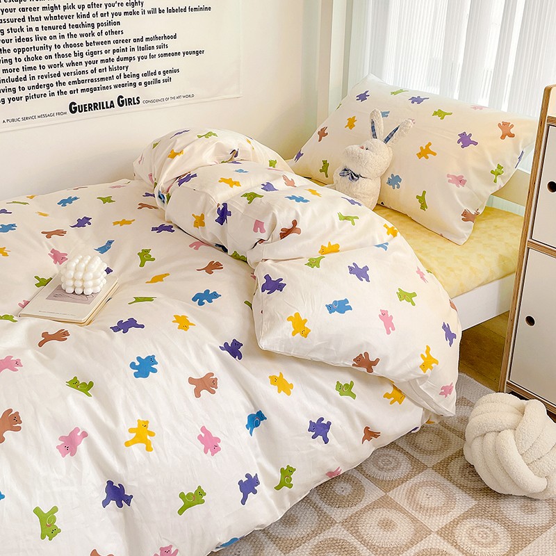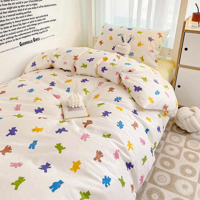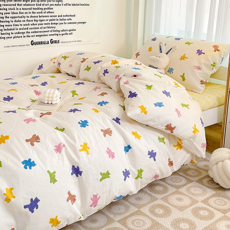 (总)昔可 2023新款学生季卡通普通款四件套,彩色气球熊,彩条恐龙,憨憨熊,花蜜小兔,蘑菇兔,圈圈草莓,蔬菜小兔,郁金香小萌狗