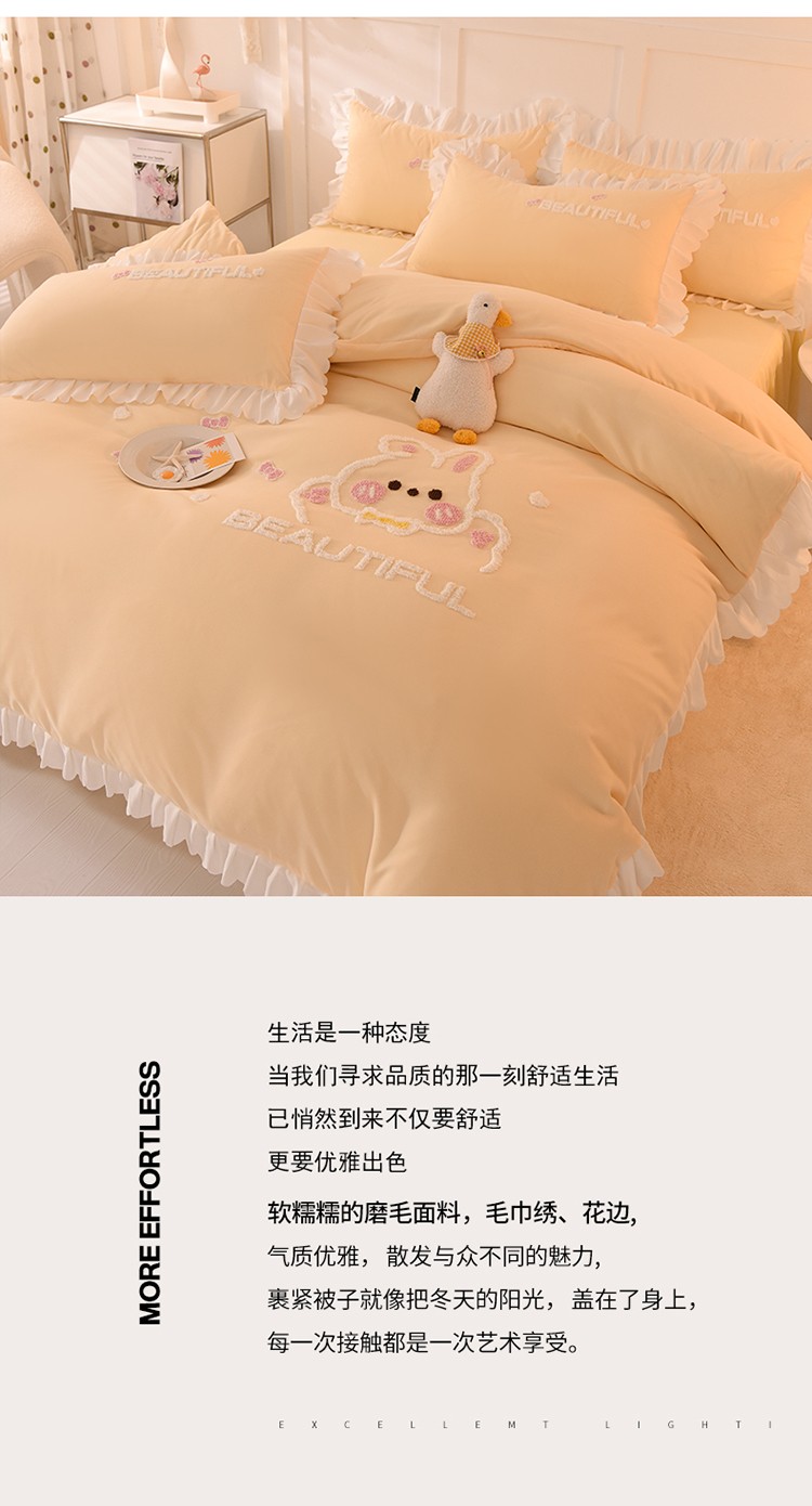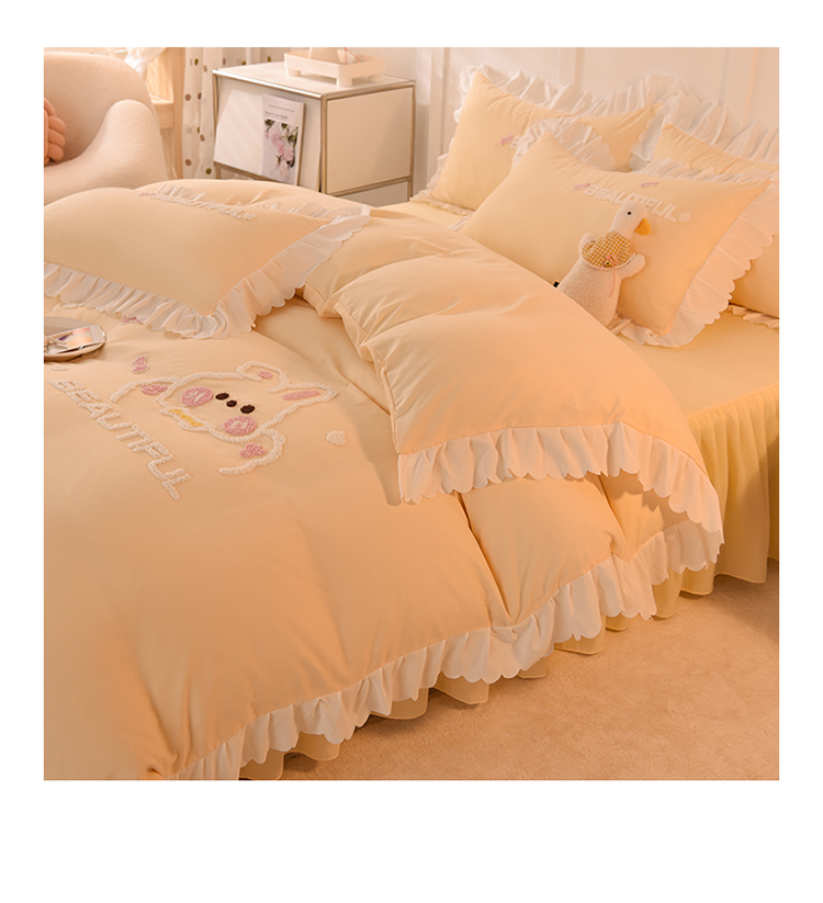 当前位置: 91家纺网 > 商品网购 > 床品套件 > 四件套 > 普通磨毛四件套 > 梦之岛2022韩版宝贝兔系列毛巾绣四件套 宝贝兔-奶黄