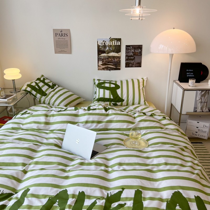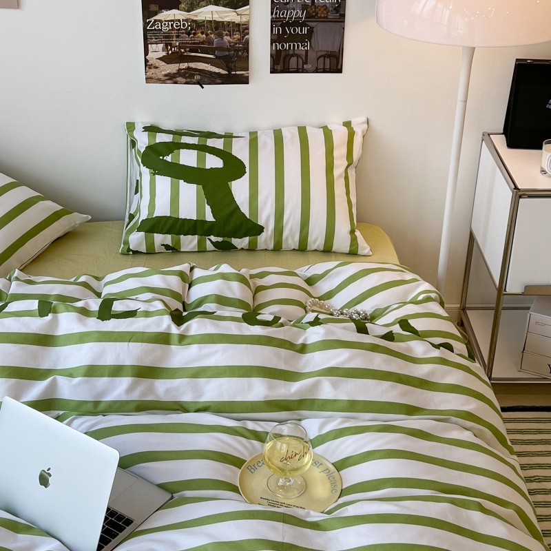 (总)昔可 2023新款全棉ins格子混搭系列四件套,ins简约绿格,粉蓝格,开心果格,学院格纹,粉绿格,海盐兰格,黄绿格,夏日蓝条,芝士黄条,紫芋泥芝士格