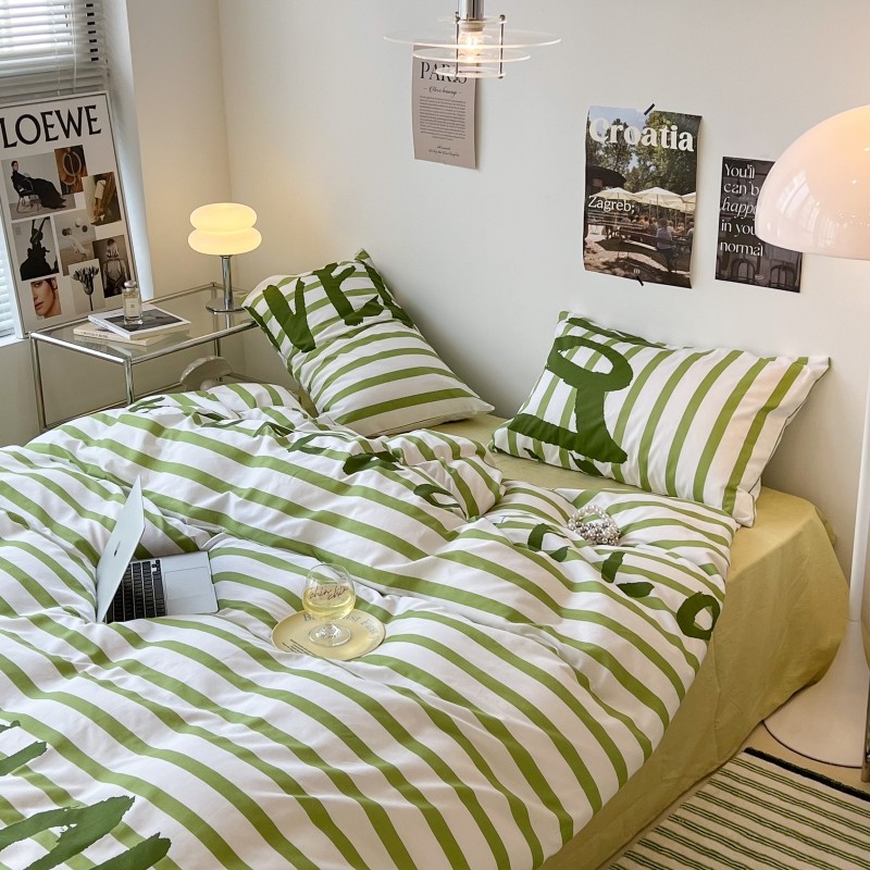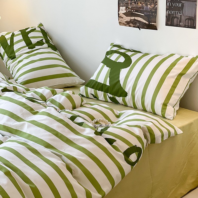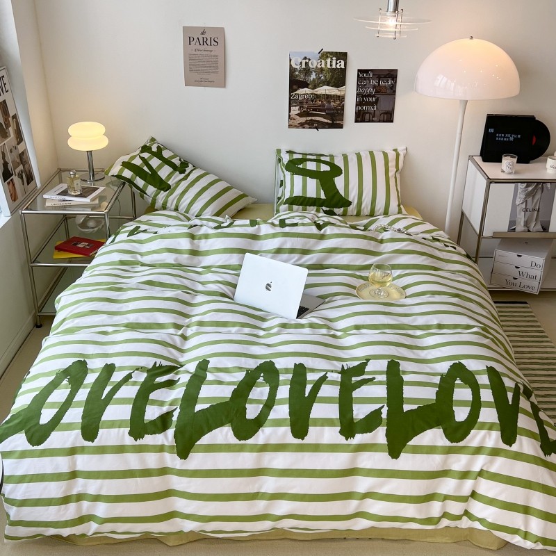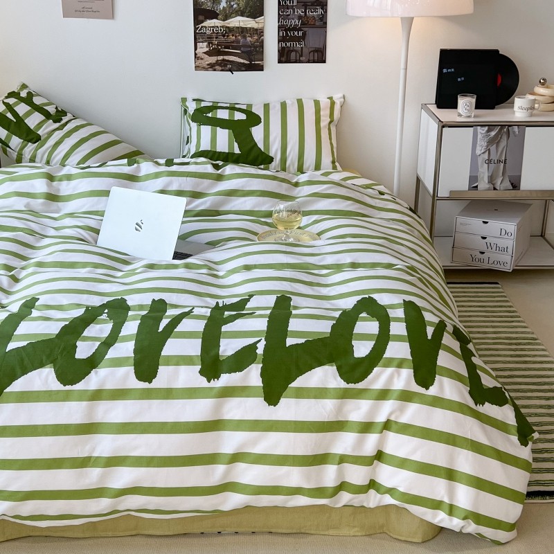 昔可家纺 2022新款简约几何北欧风全棉四件套 字母条纹