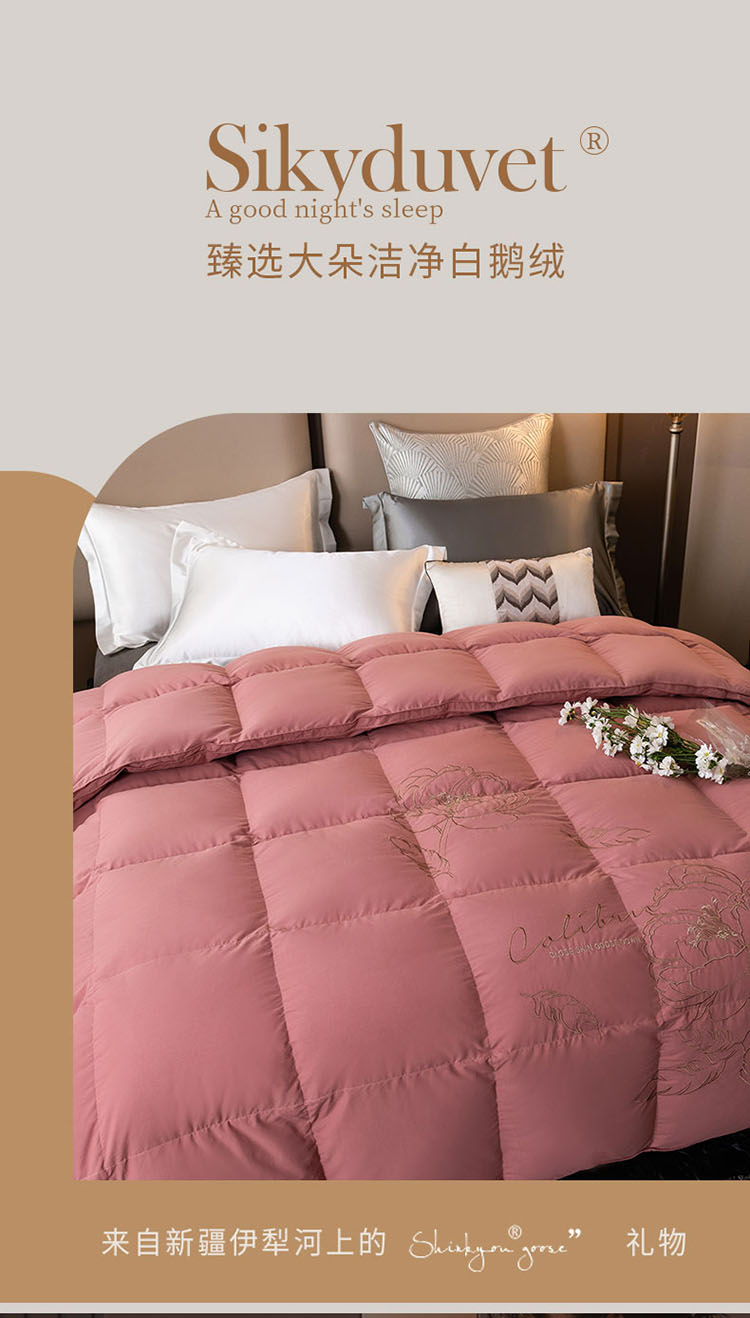 总绒研羽绒 2025魅力人生真丝大提花鹅绒被羽绒被冬被被子,灰色,藕粉,香槟色