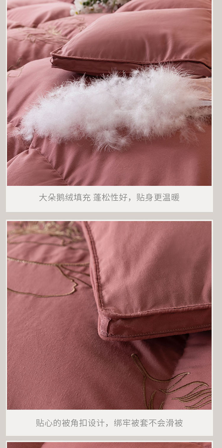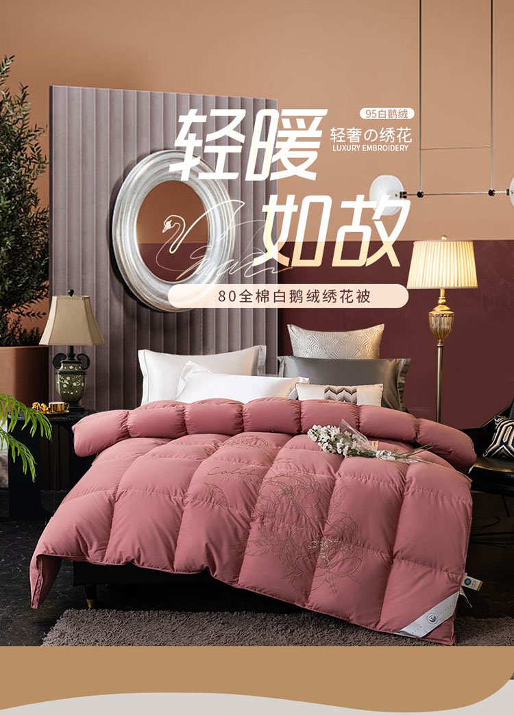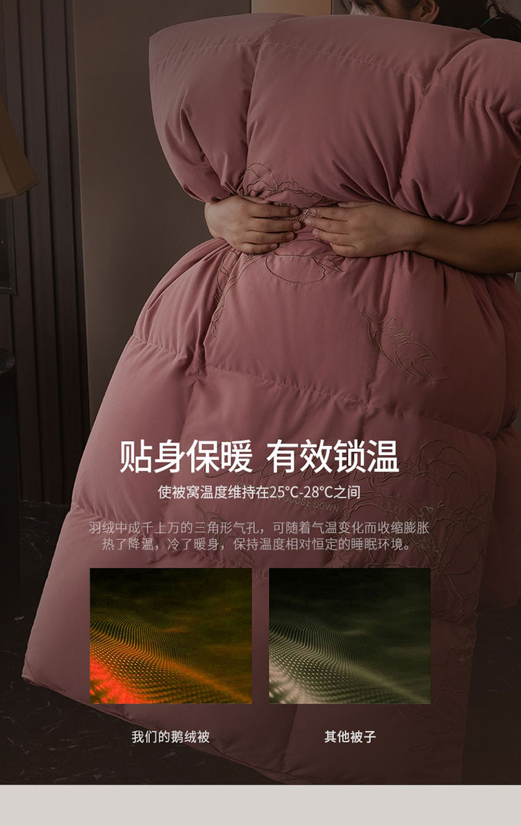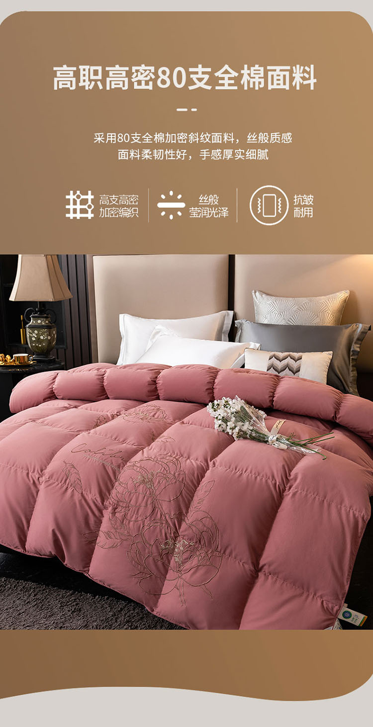 商品名称:绒研 2025新款80全棉绣花羽绒被白鹅绒冬被被子被芯 沐香 -豆沙