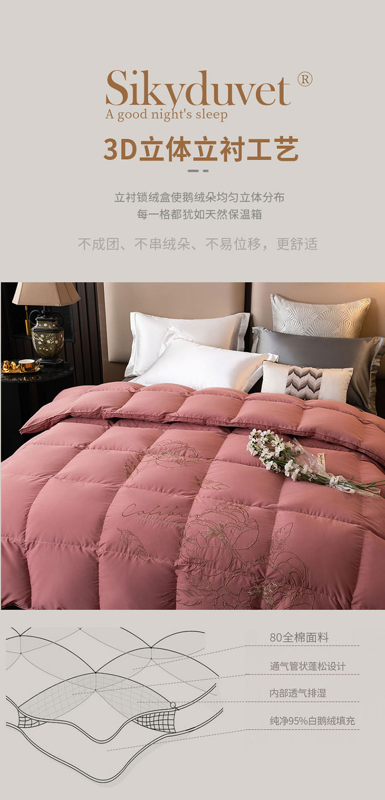总绒研2025柔赛丝提花立体羽绒被鹅绒被被子被芯春秋被冬被直播热款优选,白色,豆沙,粉色,灰色,金色,蓝色,玉色