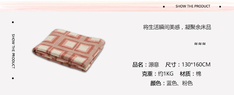 商品名称:暖绵绵新款全棉针织棉毛毯毯子源意 源意-蓝色