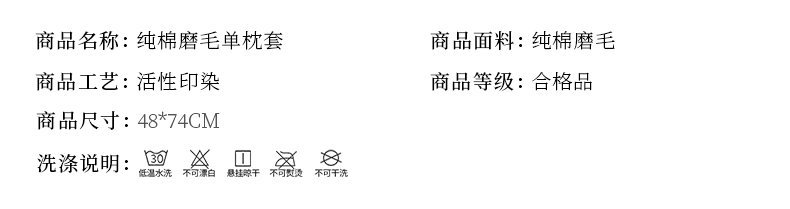商品名称:(总)纽缦 纯棉磨毛加厚系列-单枕套 48x74cm(一对)