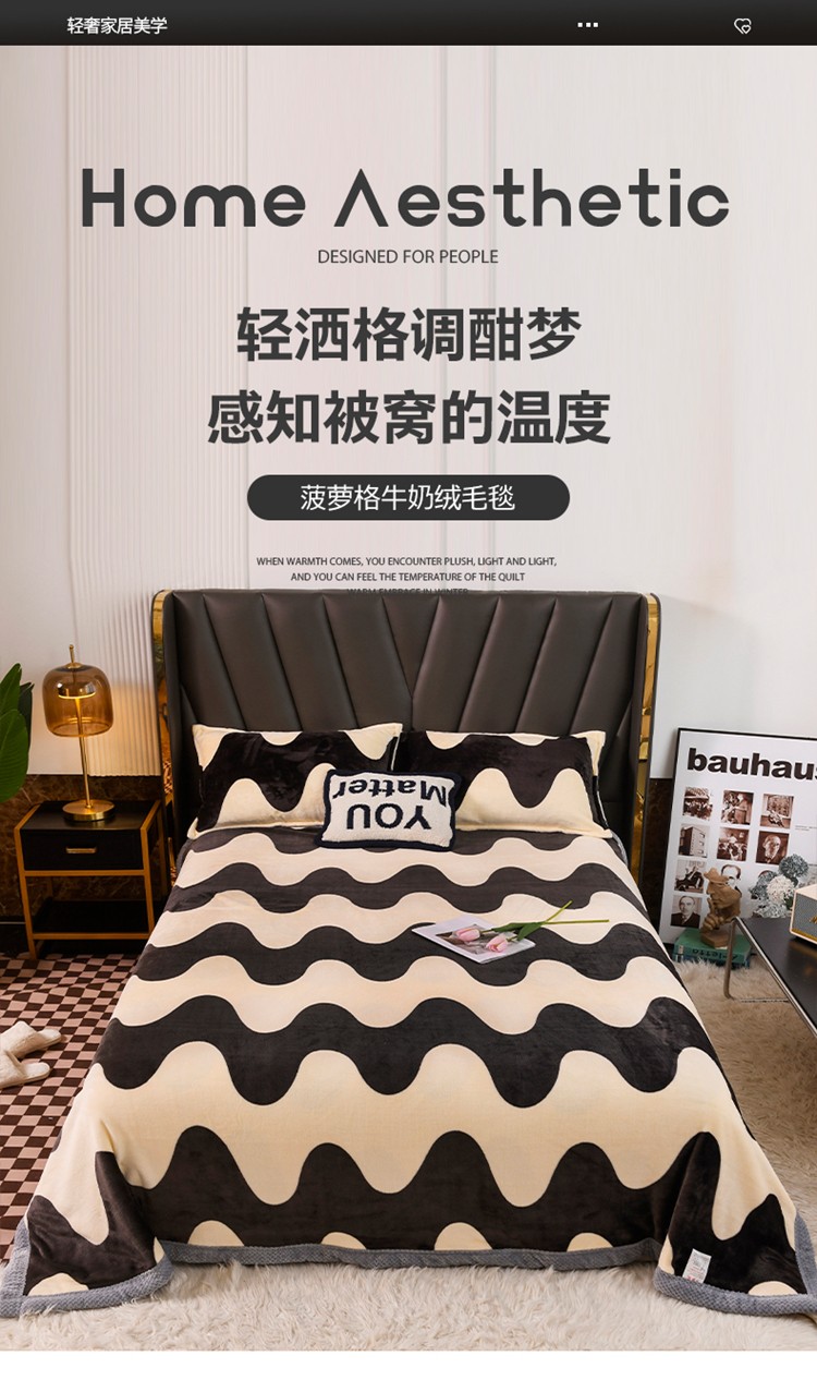 雅萱 2024新款菠萝格牛奶绒包边毛毯 黑白啵啵
