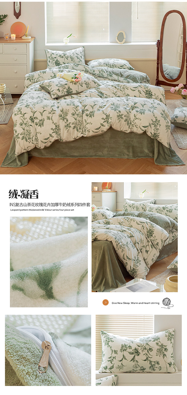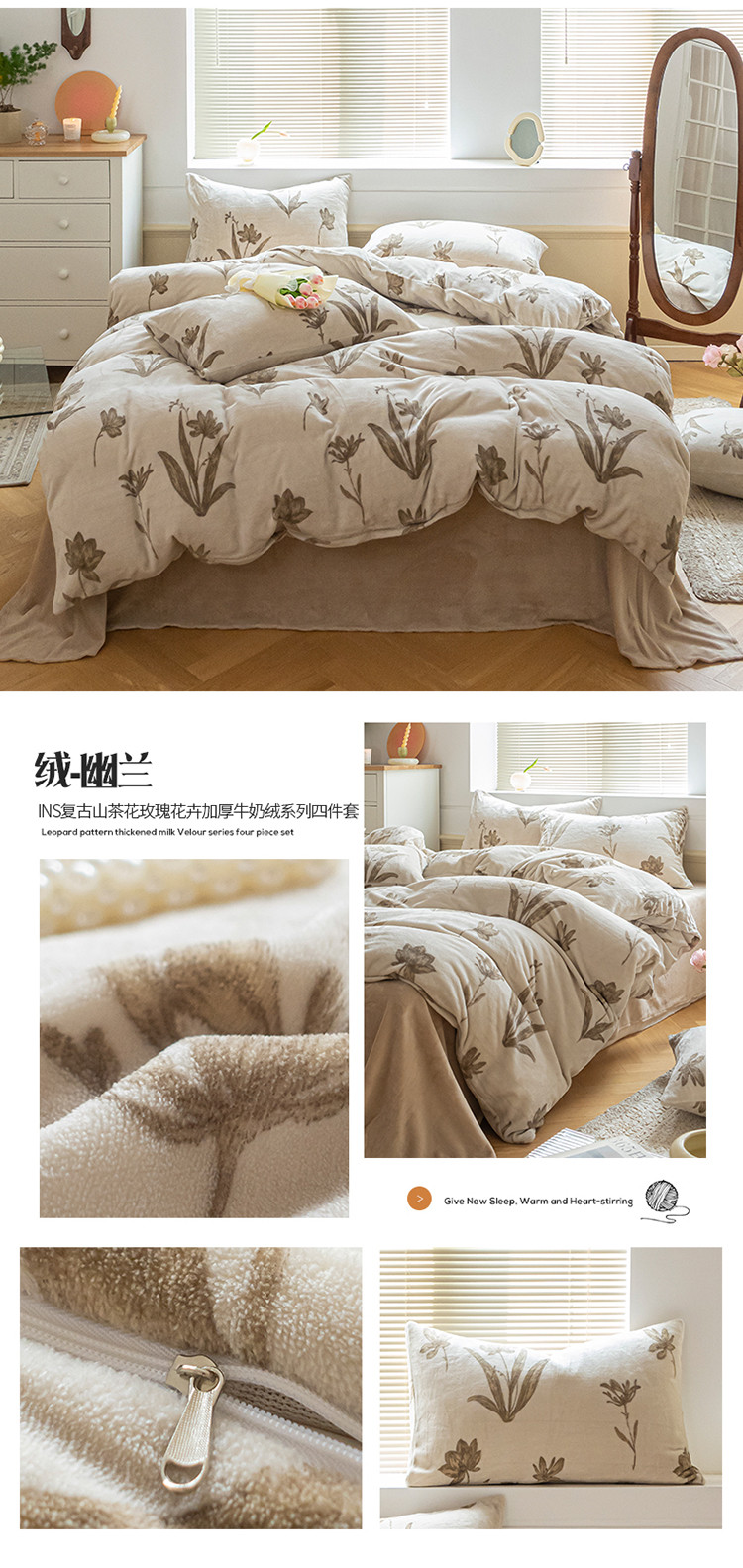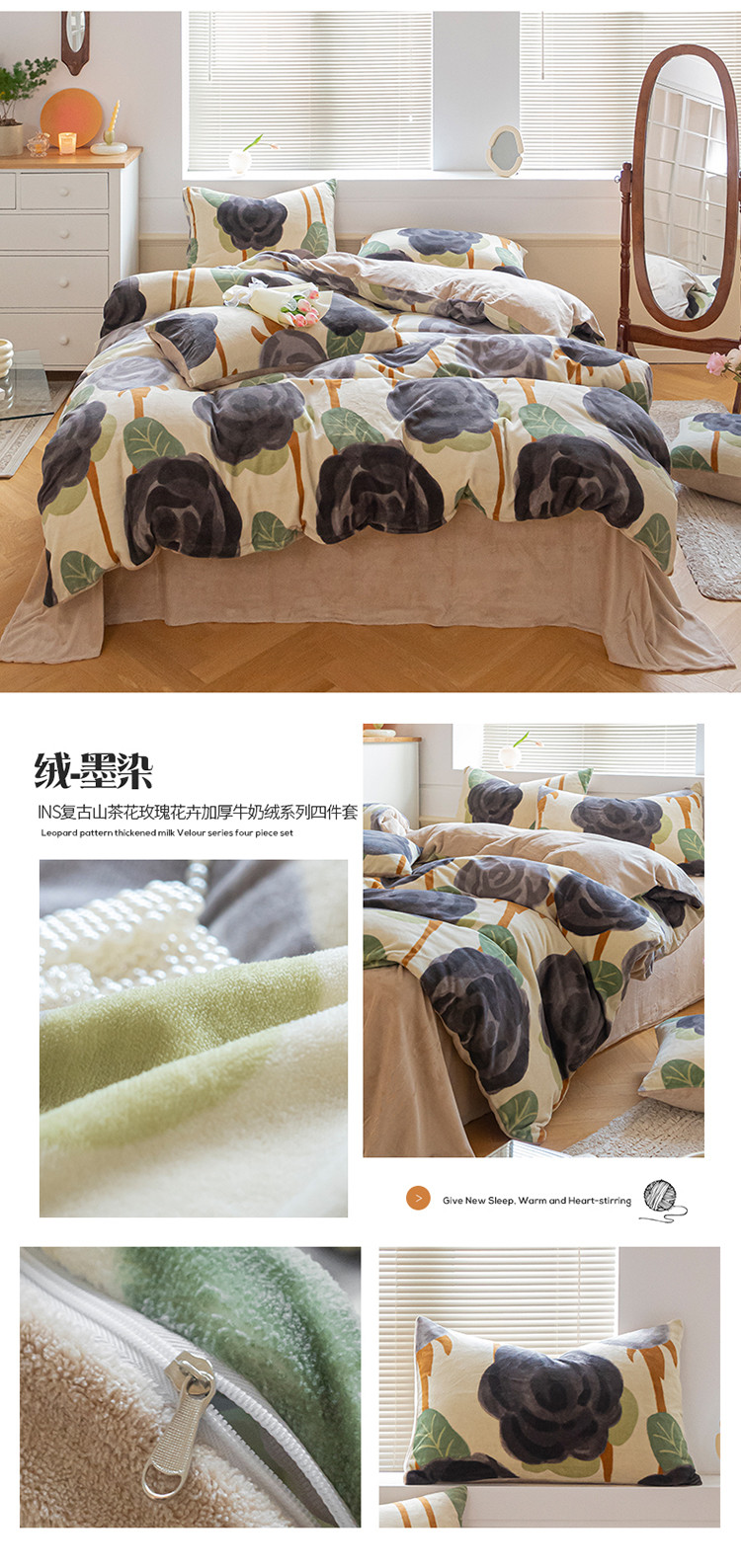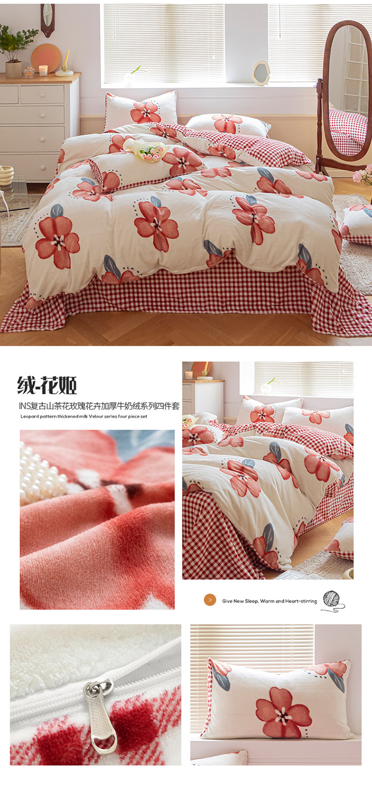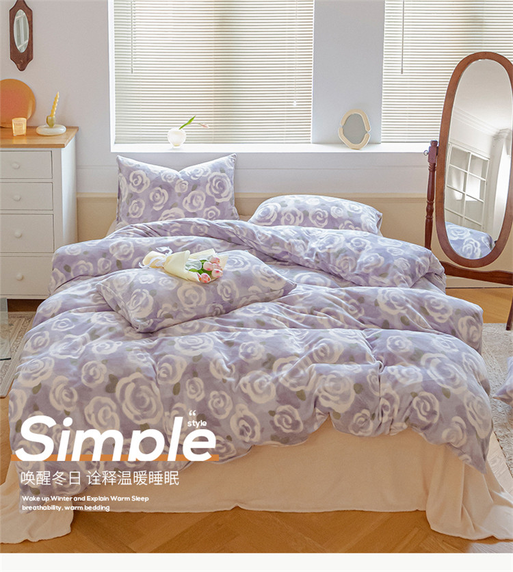 (总)桃子ins复古山茶花玫瑰花卉加厚牛奶绒系列四件套