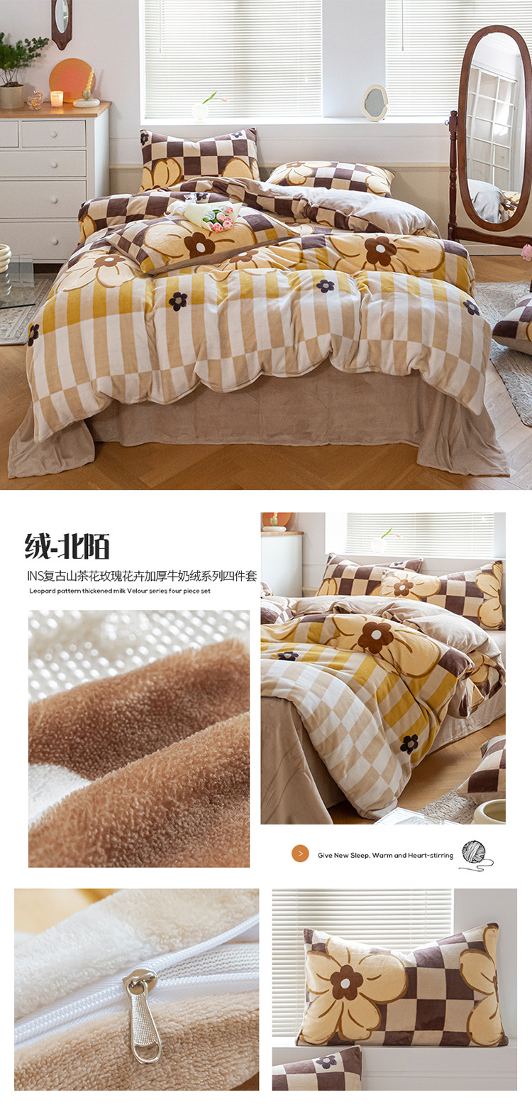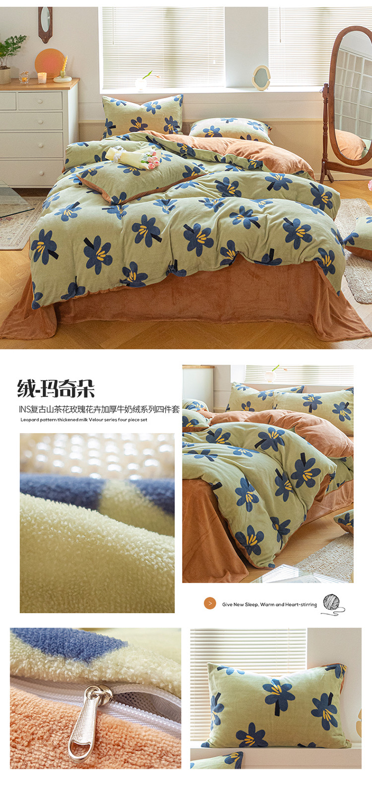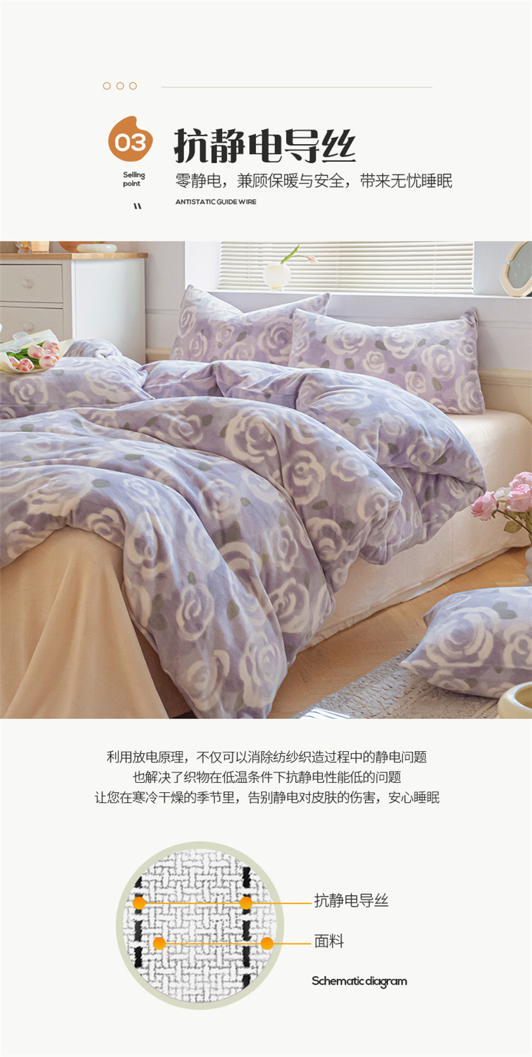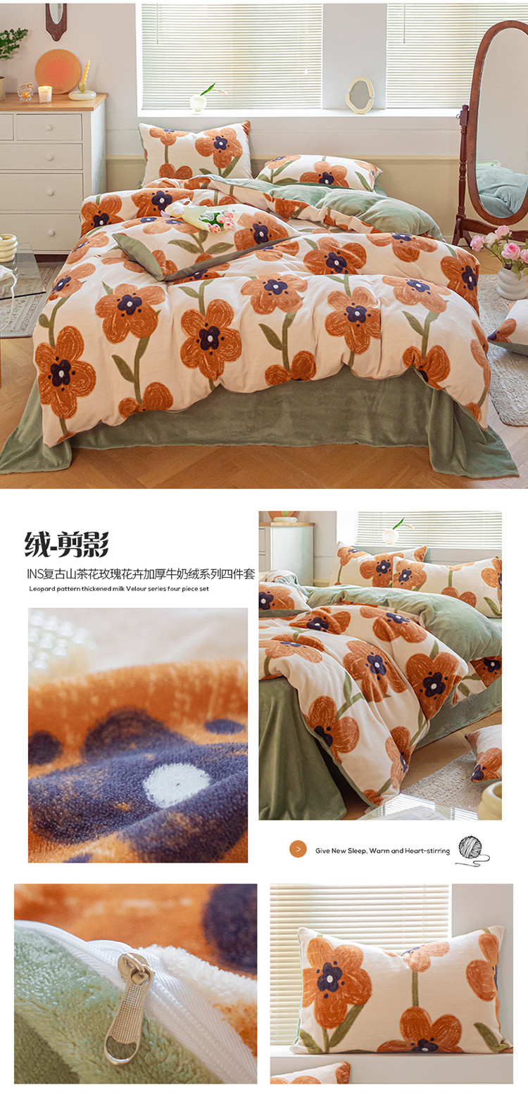 (总)桃子ins复古山茶花玫瑰花卉加厚牛奶绒系列四件套