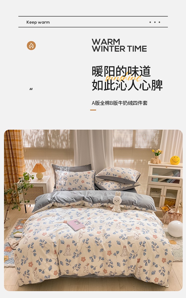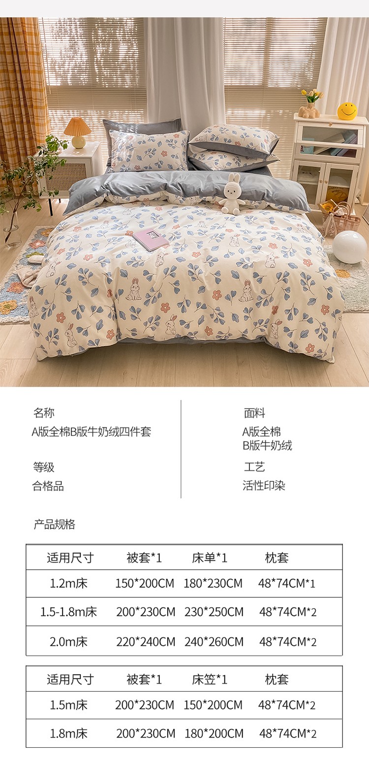 商品名称:雅居纺 2022新款棉绒四件套 可爱兔
