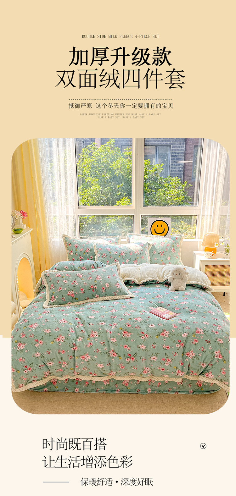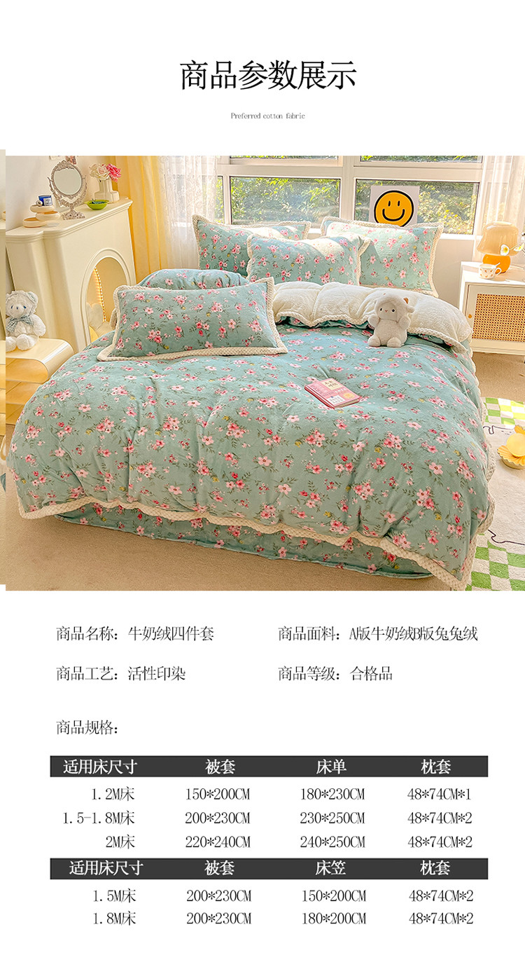 当前位置: 91家纺网 > 商品网购 > 床品套件 > 四件套 > 牛奶绒四件套 > 琪格格 新品热款牛奶绒精拍A牛奶绒B兔兔绒大包边四件套