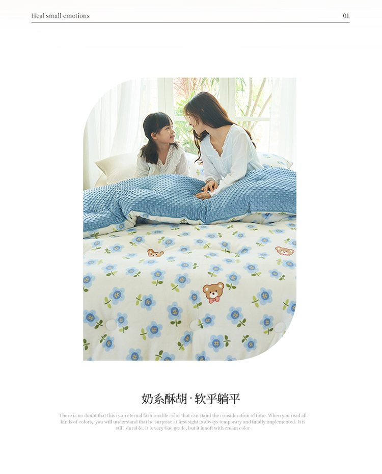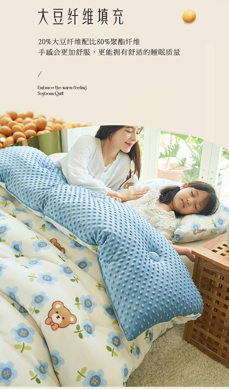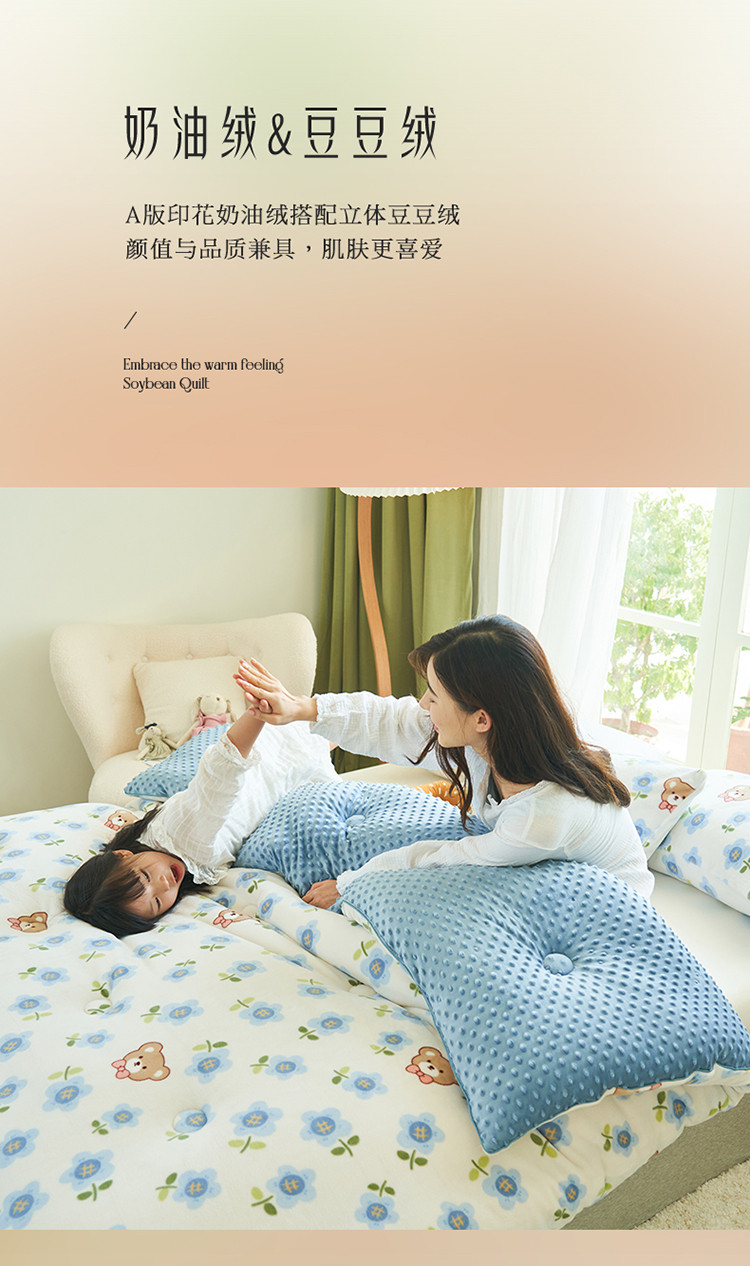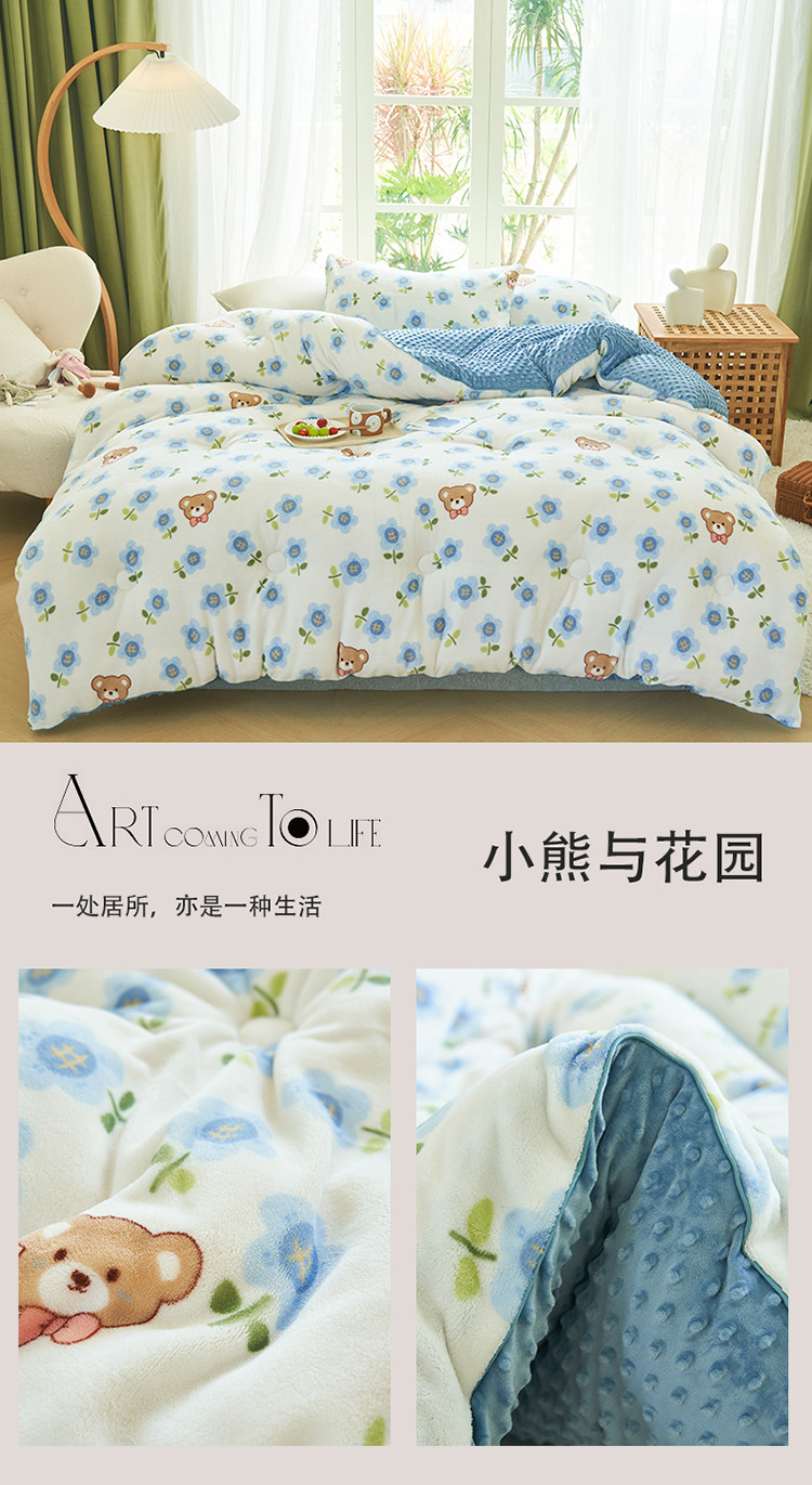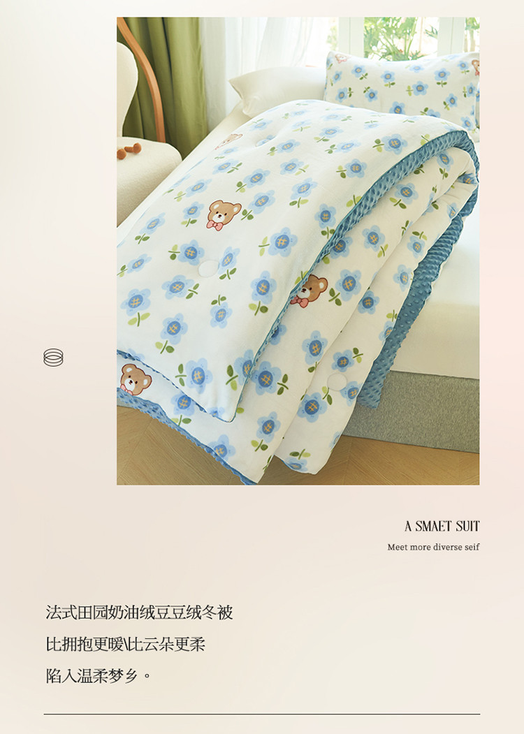 商品名称:晨曦 2022新款法式田园奶油绒豆豆绒大豆棉冬被 小熊与花园