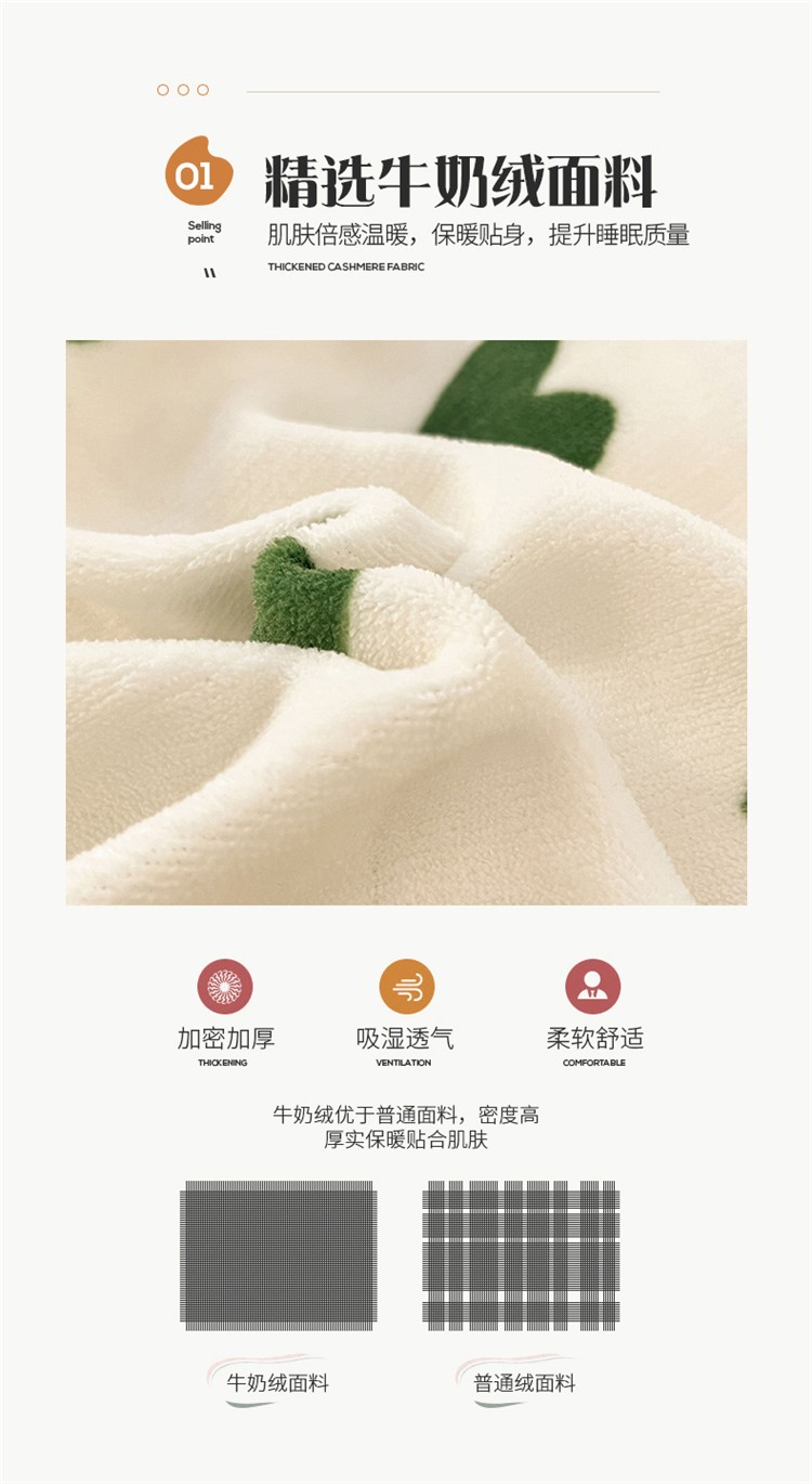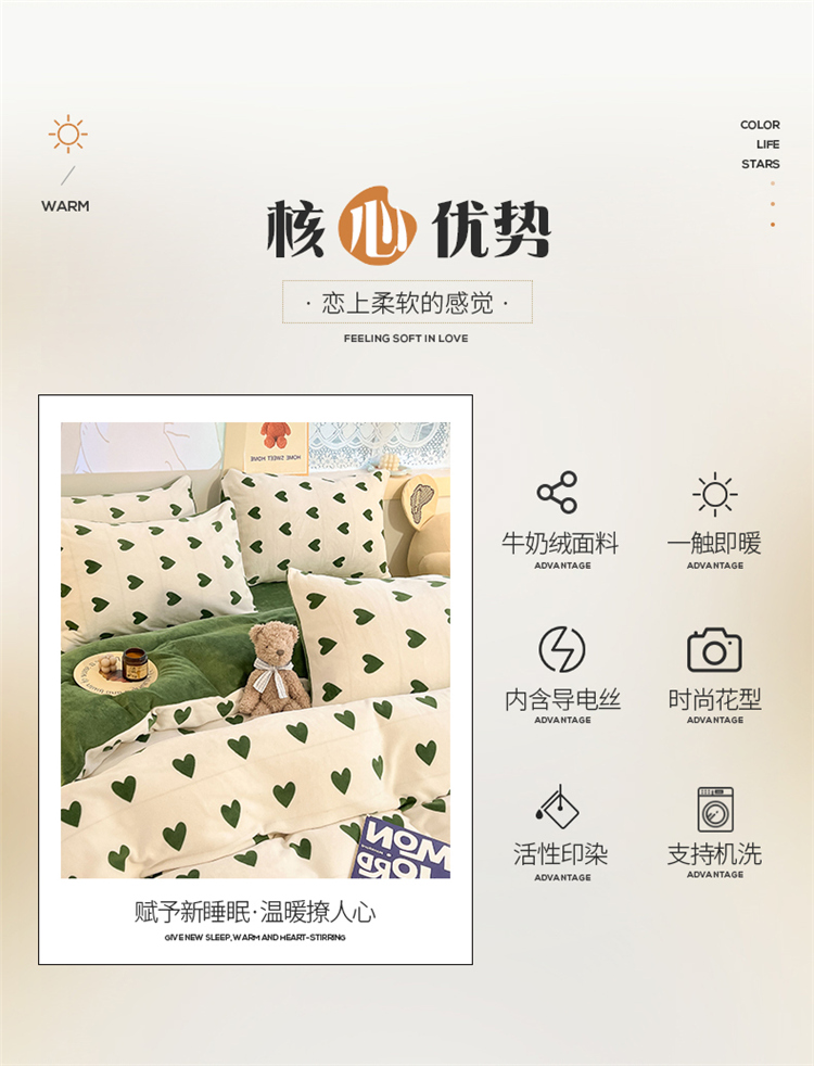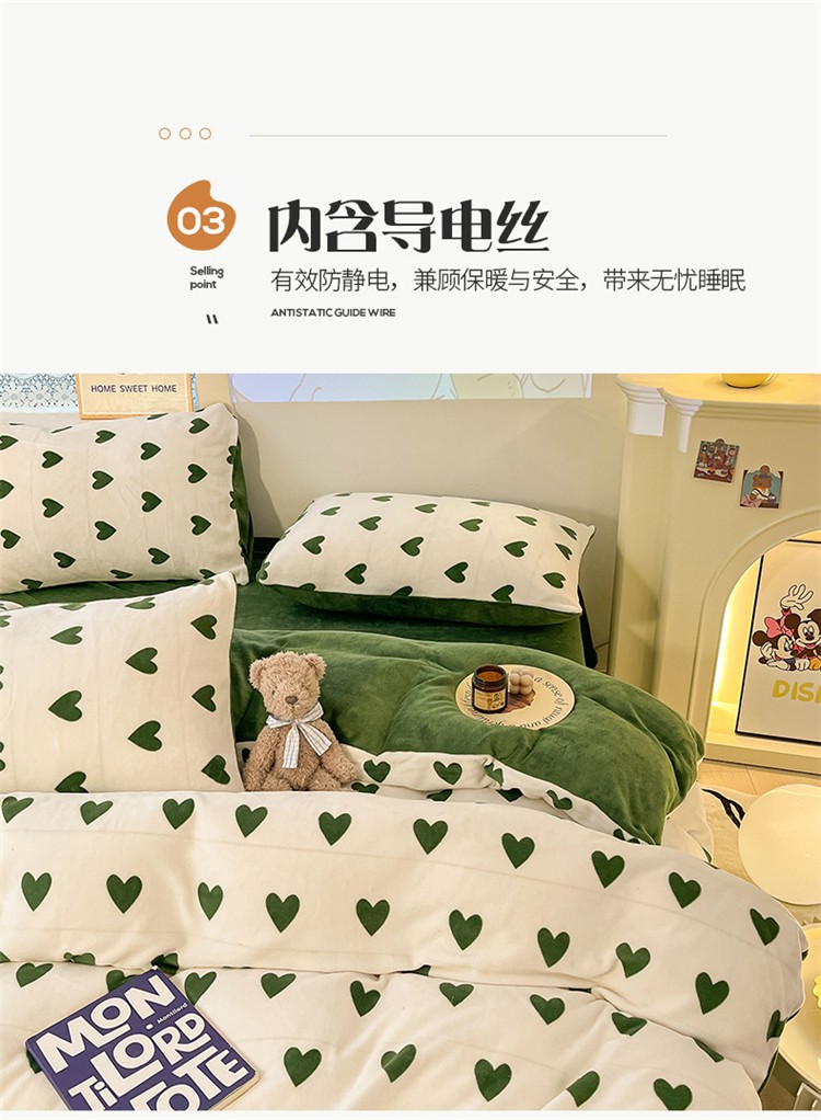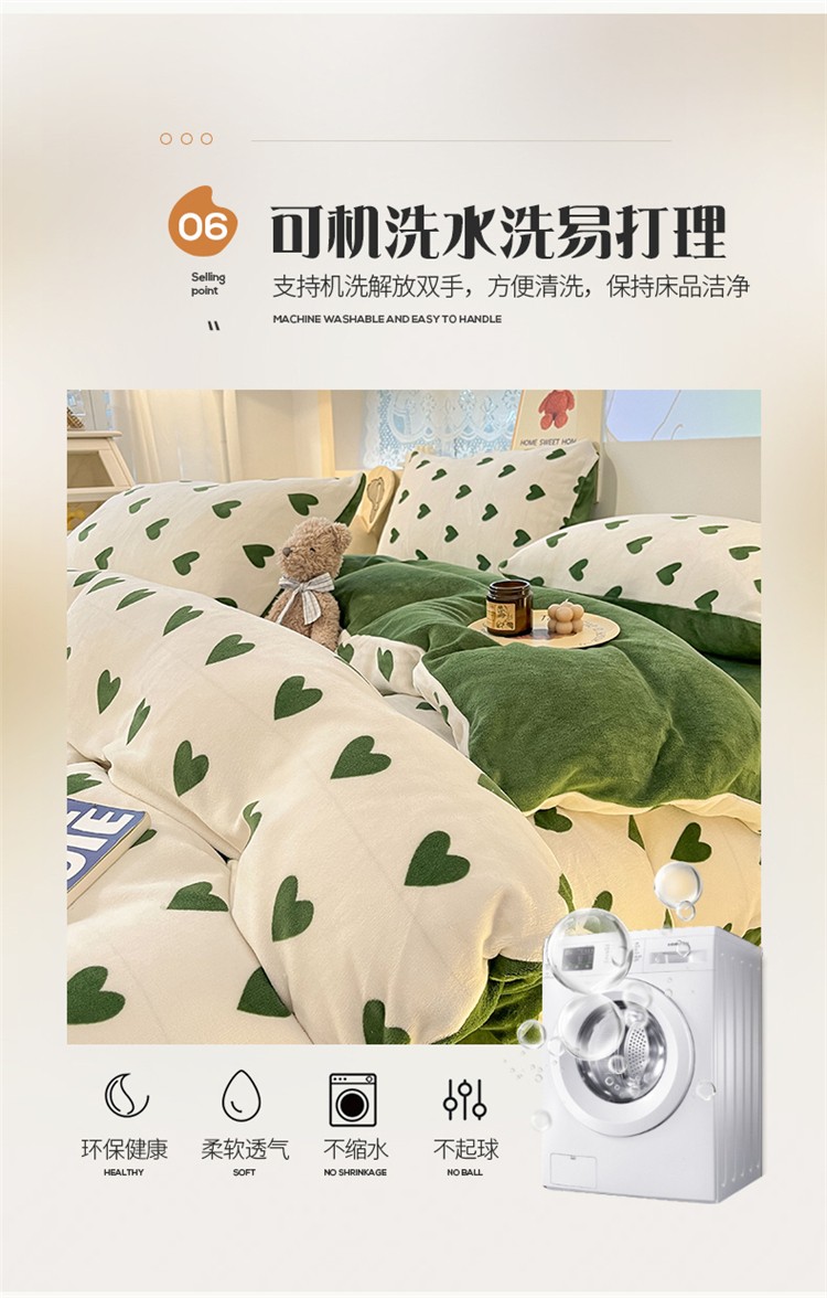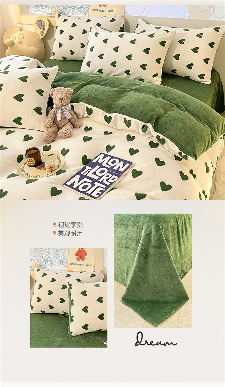 商品名称:桃子 2022新款ins爱心轻奢复古加厚牛奶绒系列四件套 绒-爱心翠绿
