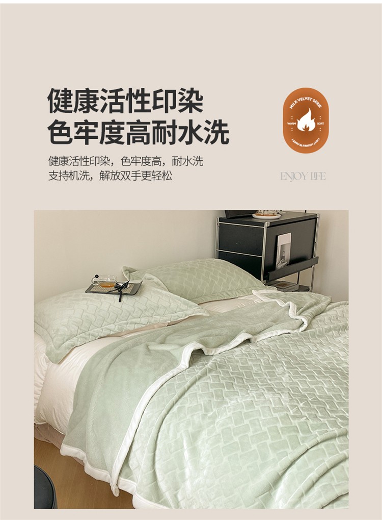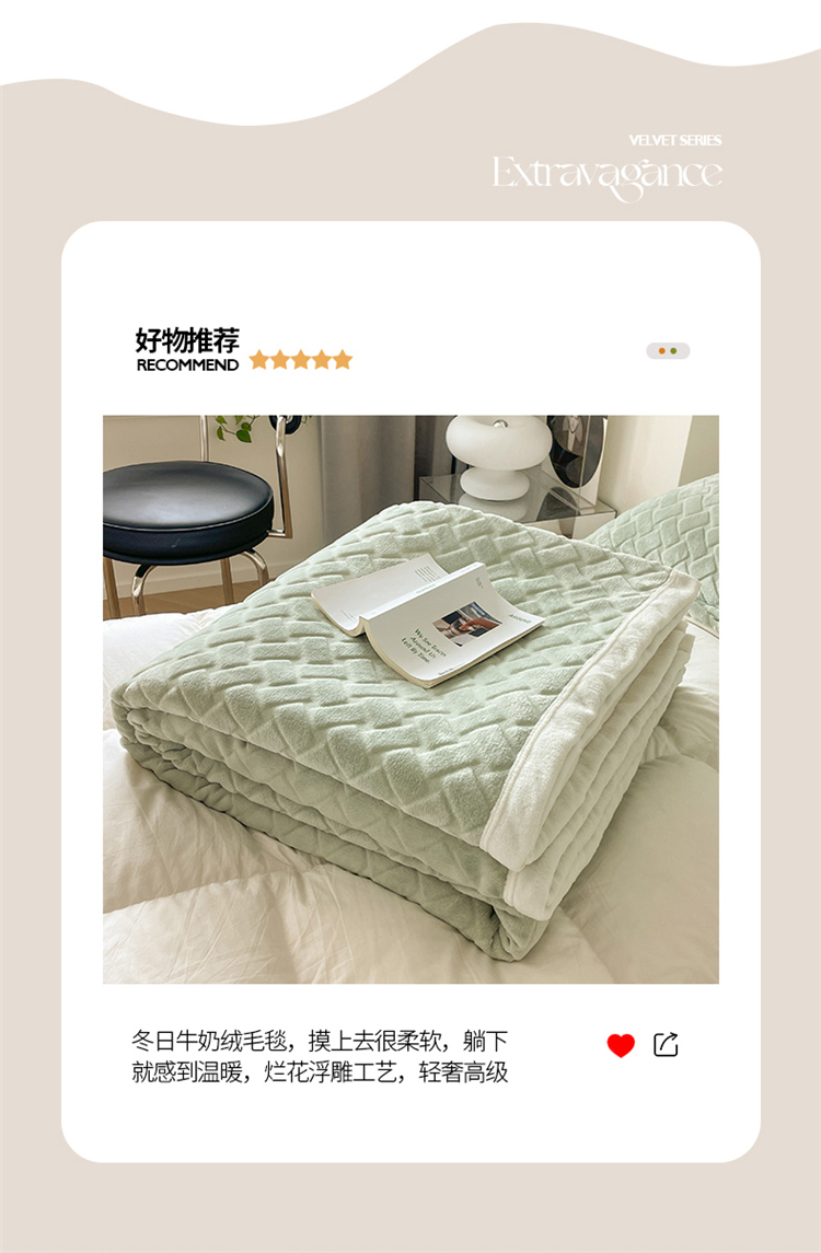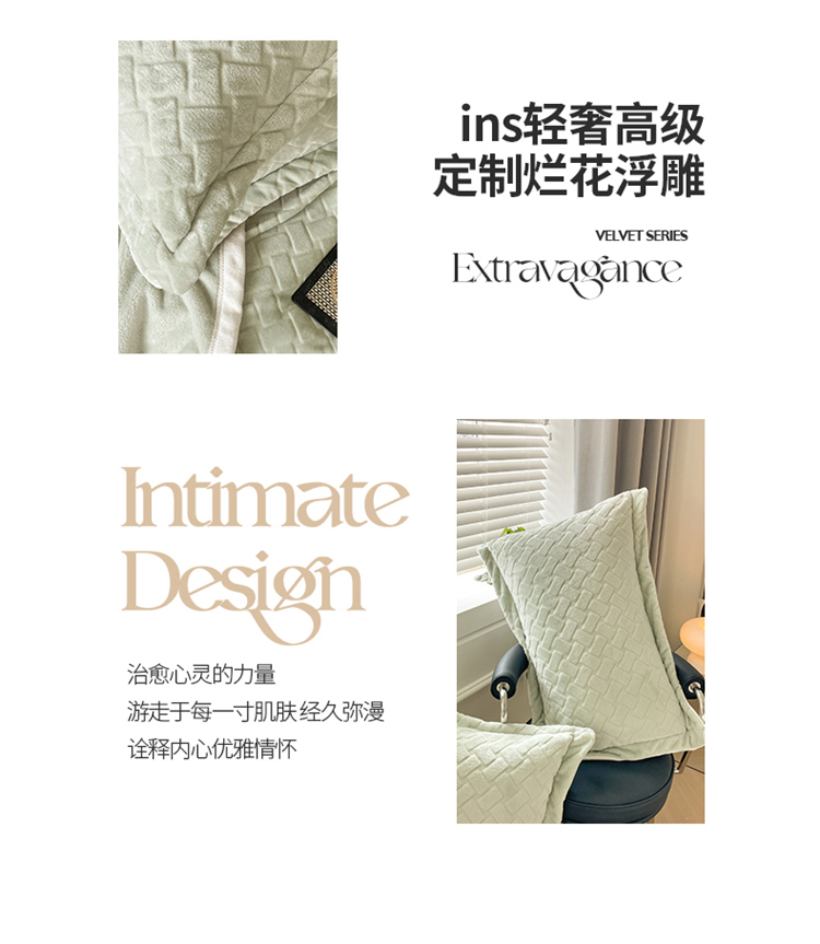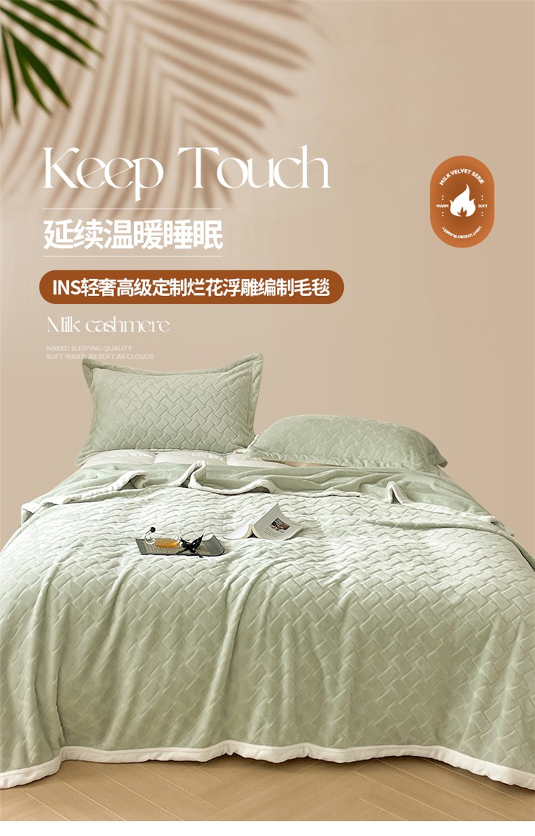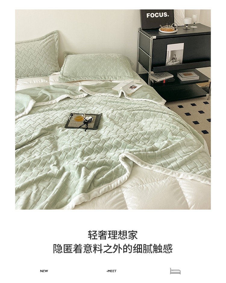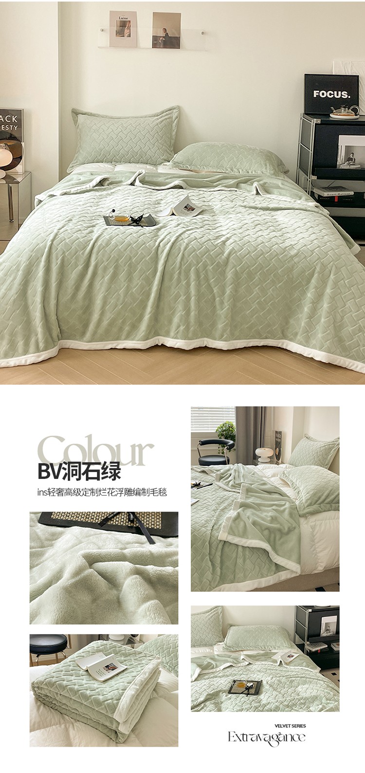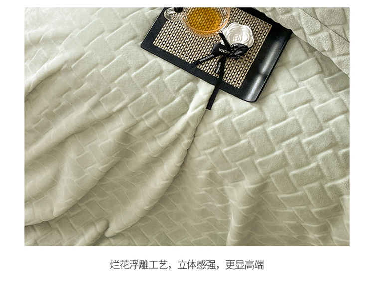 桃子ins轻奢高级定制烂花浮雕编制牛奶绒毛毯毛毯-BV洞石绿