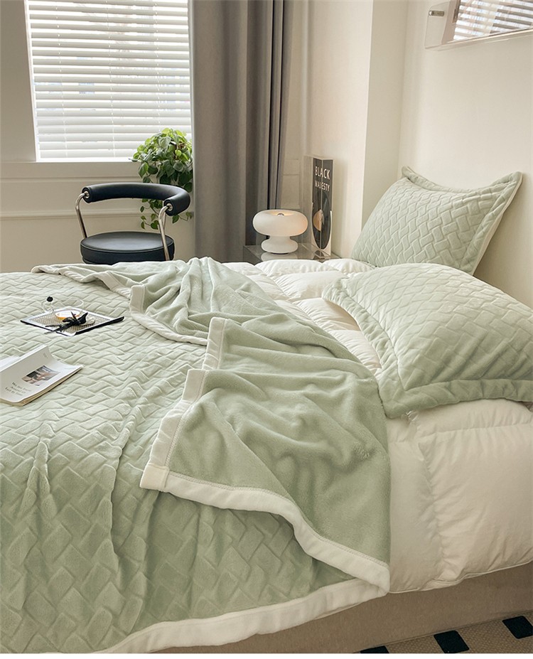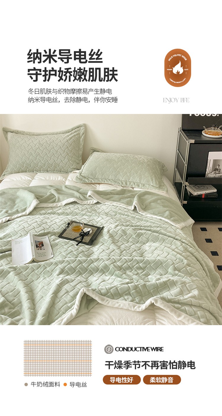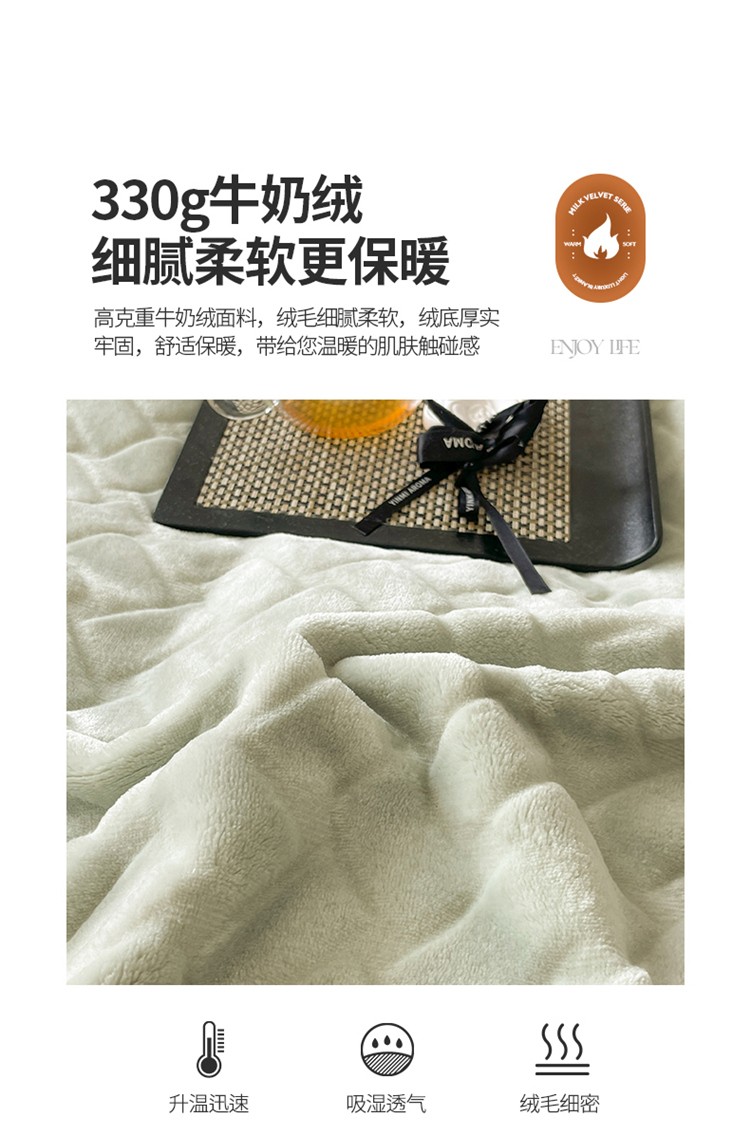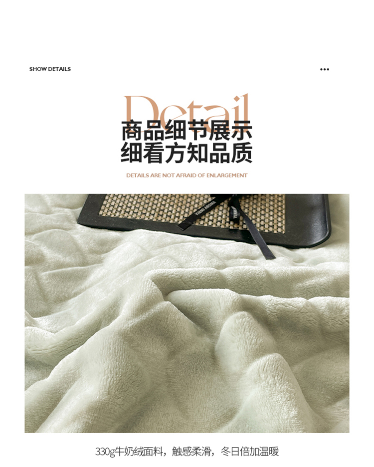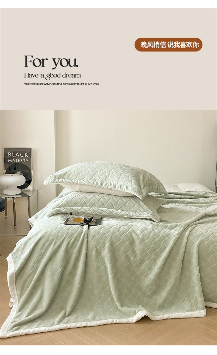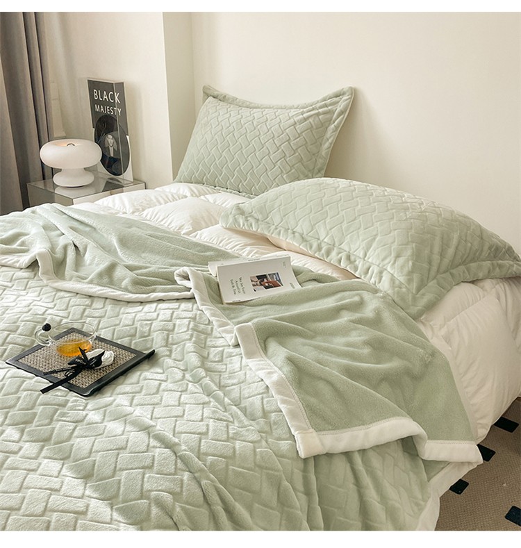 桃子ins轻奢高级定制烂花浮雕编制牛奶绒毛毯毛毯-BV洞石绿