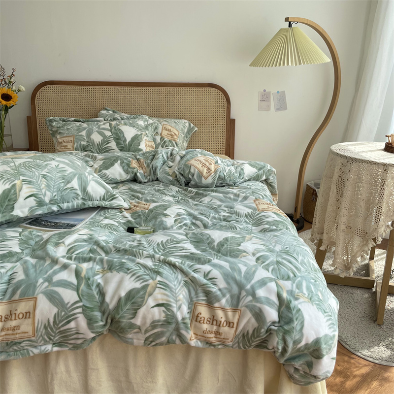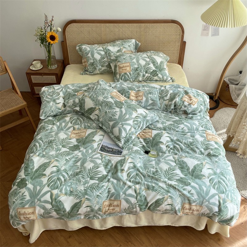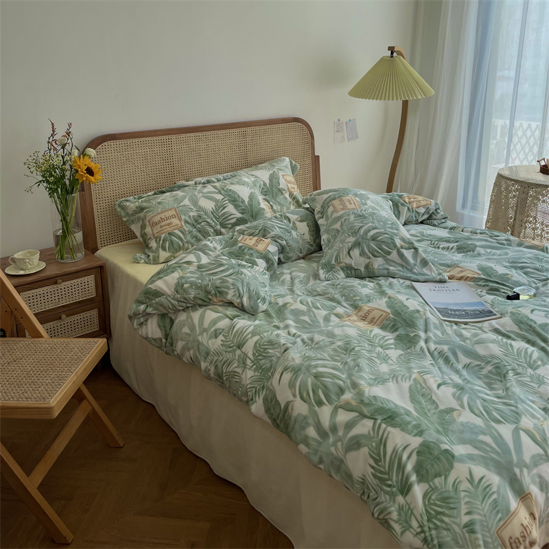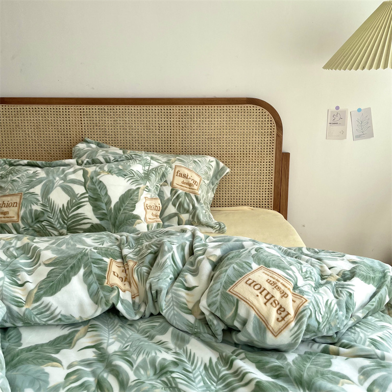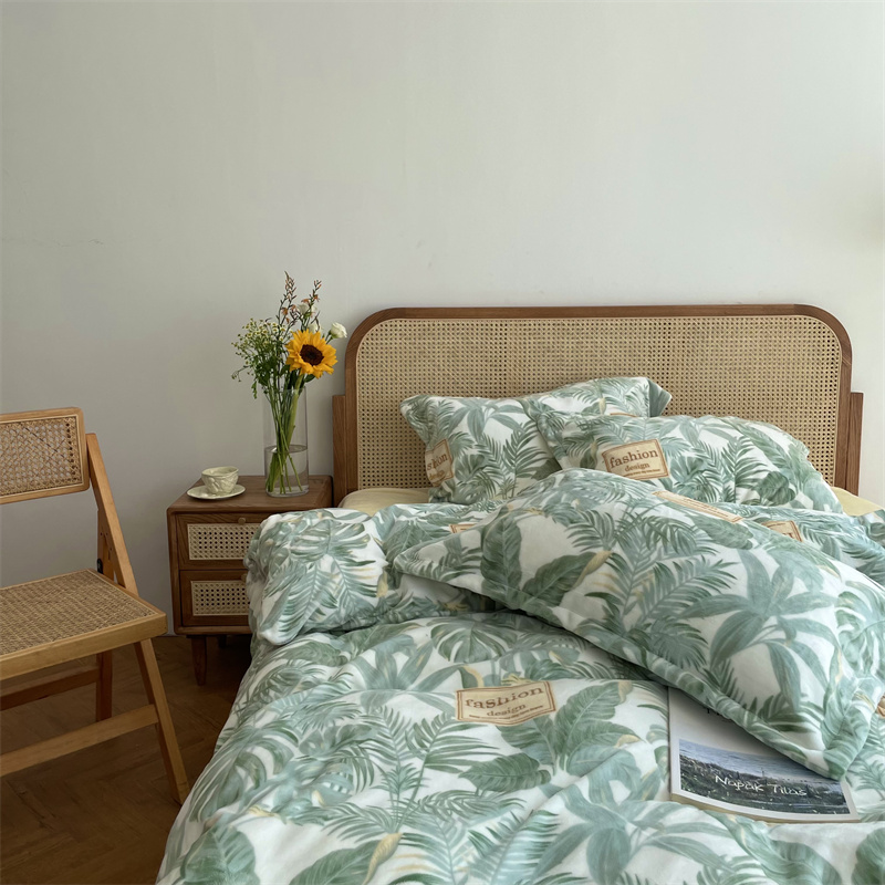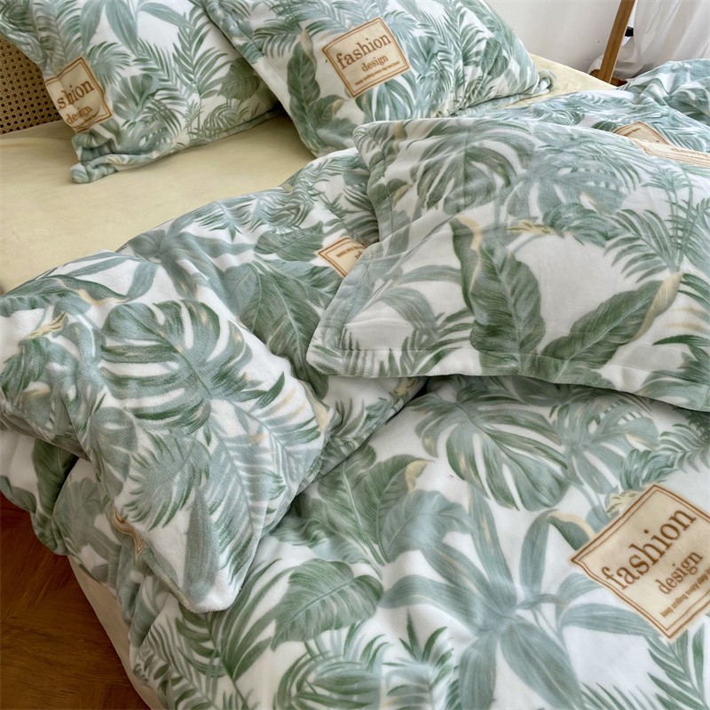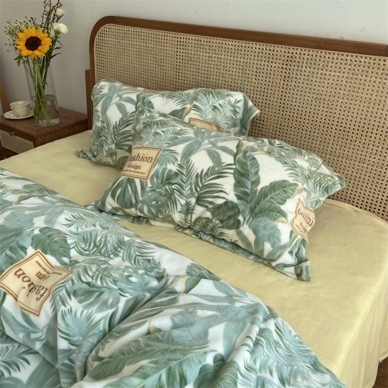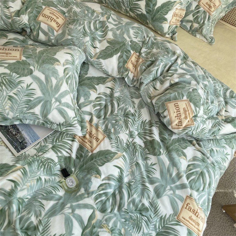 源启生活 2022新款230g全消光高克重牛奶绒四件套 热带雨林