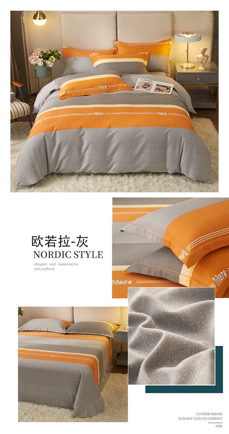 商品名称:金纱玉纺 2022新款全棉印花加厚磨毛四件套欧若拉-灰