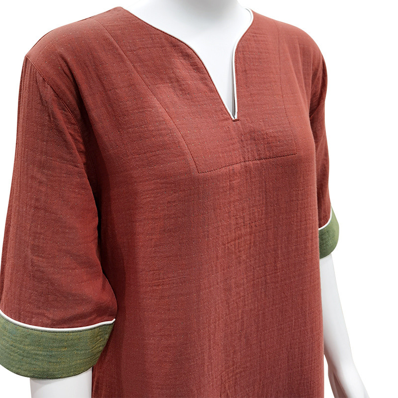 商品名称:皇寝世家 2023新款女款纯棉双层纱旗袍裙 814女-锈红色