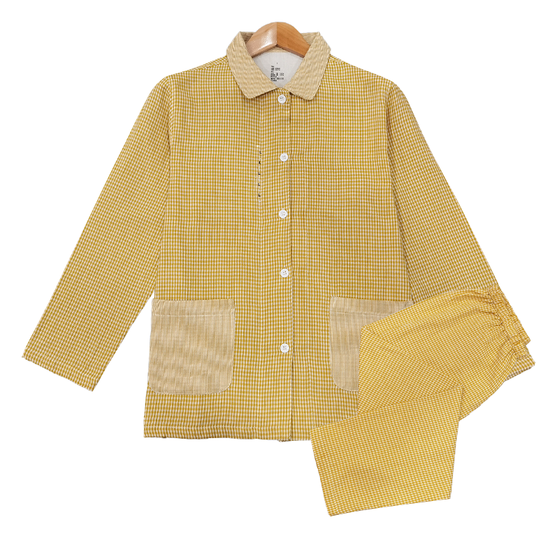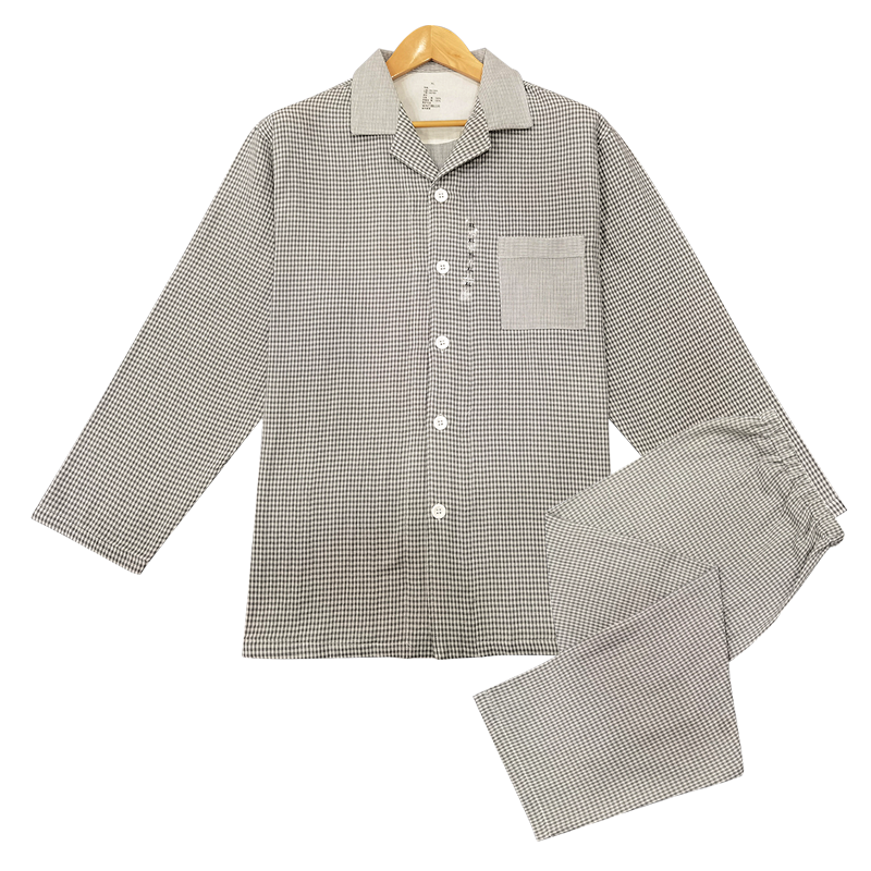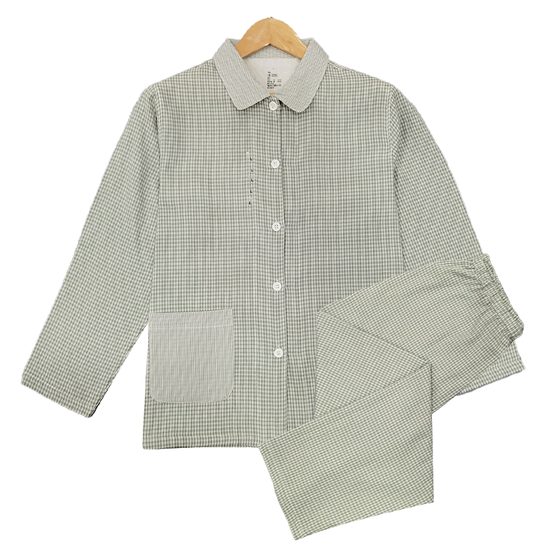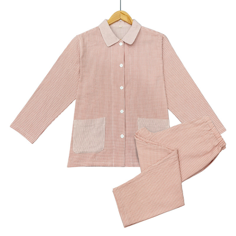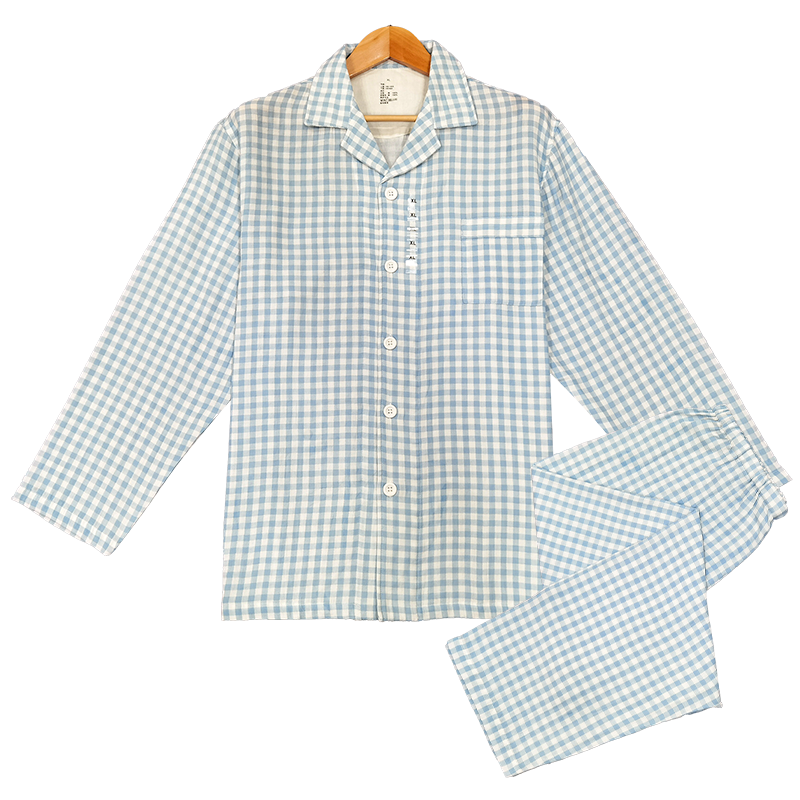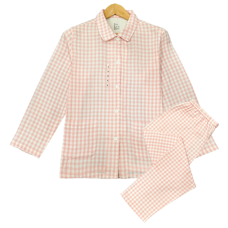 (总)皇寝世家 2023新款纯棉双层纱长袖长裤家居服套装,802男-灰细格,802男-糖果蓝,803女-粉细格,803女-黄细格,803女-绿细格,803女-糖果粉