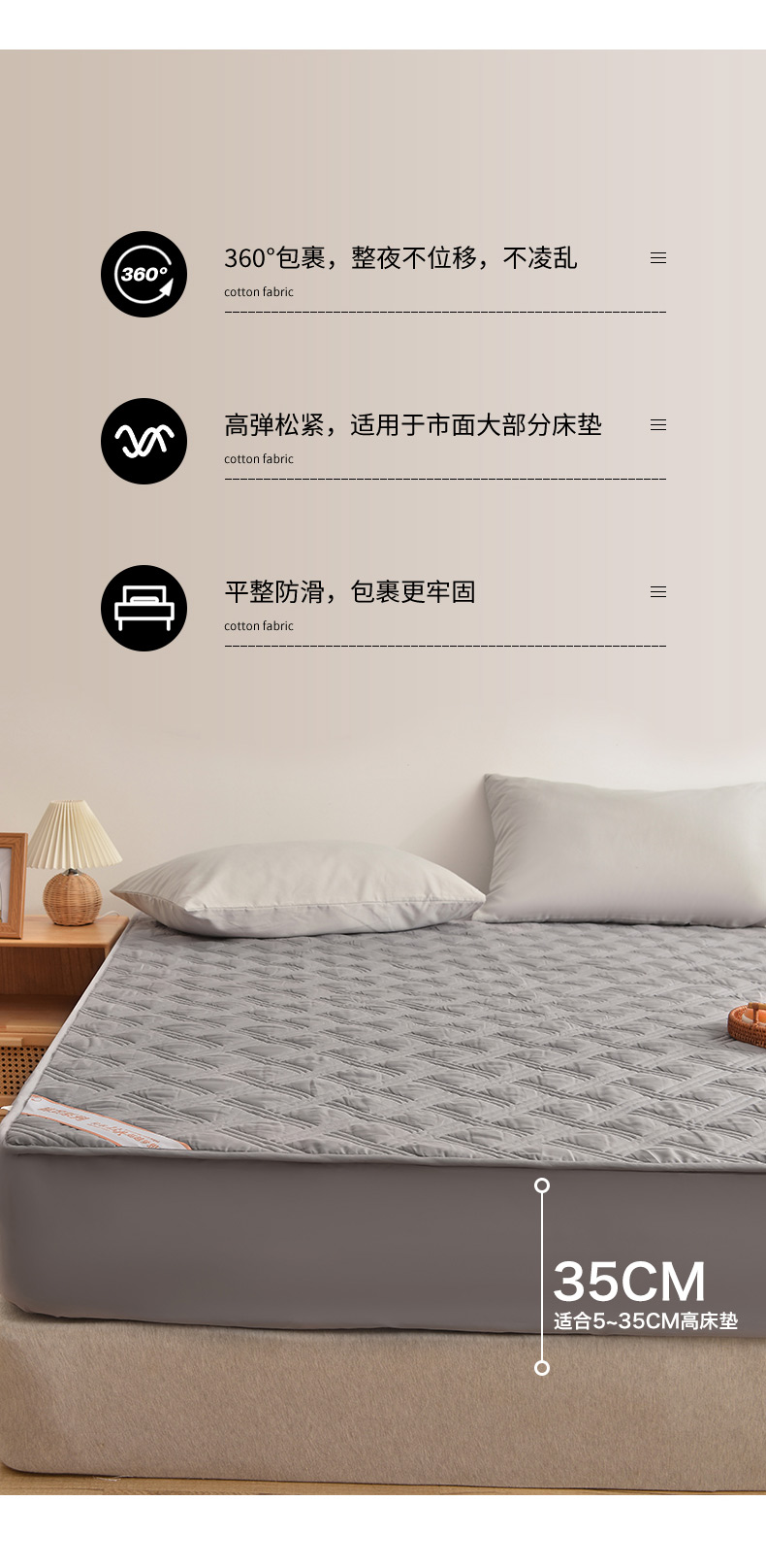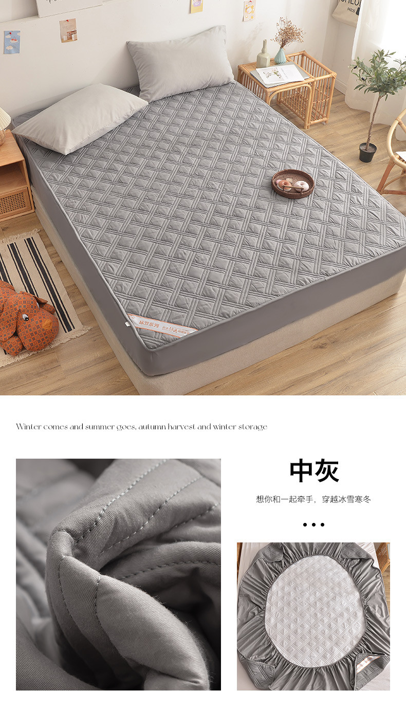 商品名称:梦柏 2023新款13372全棉斜纹夹棉床笠 中灰