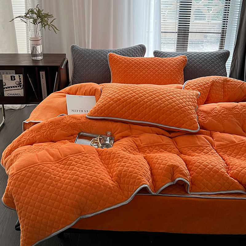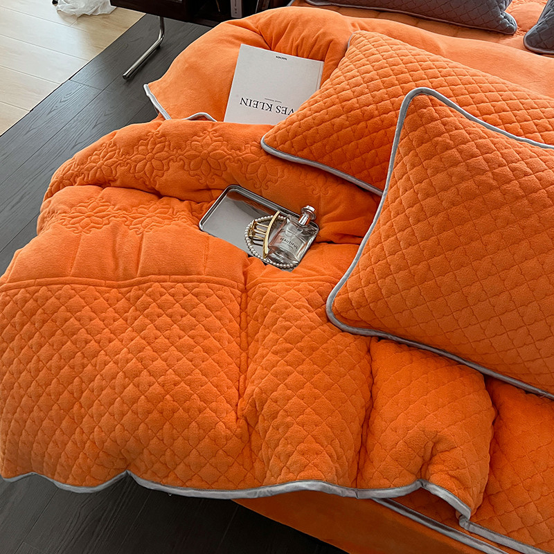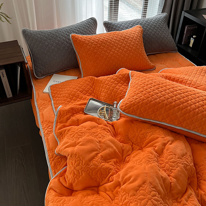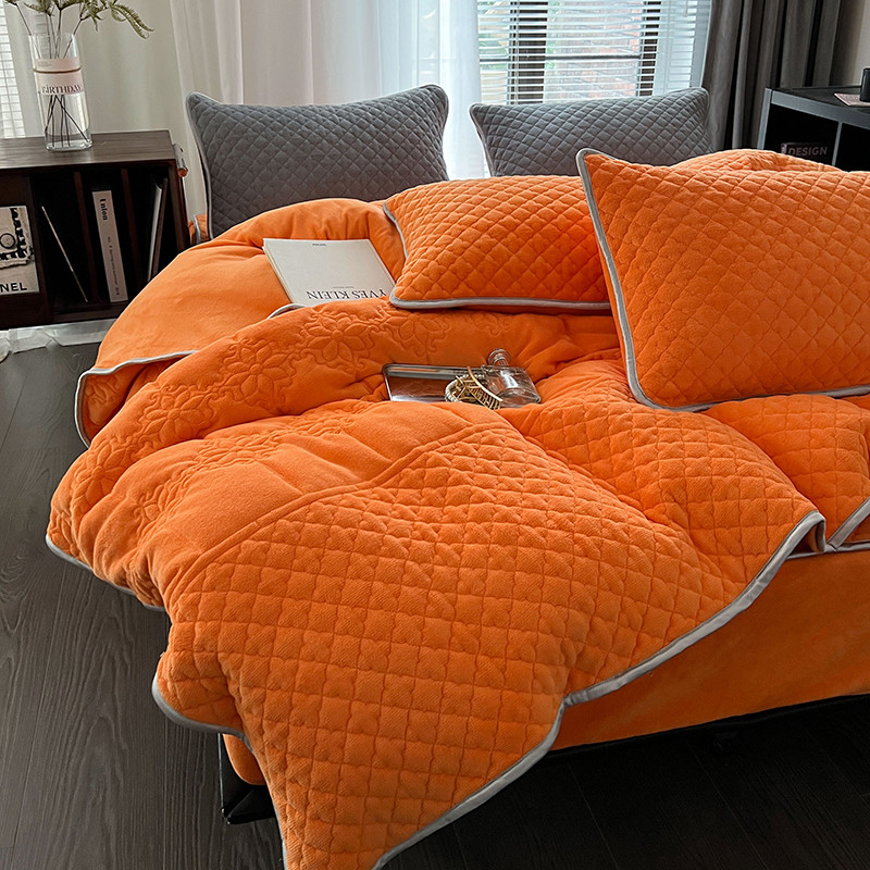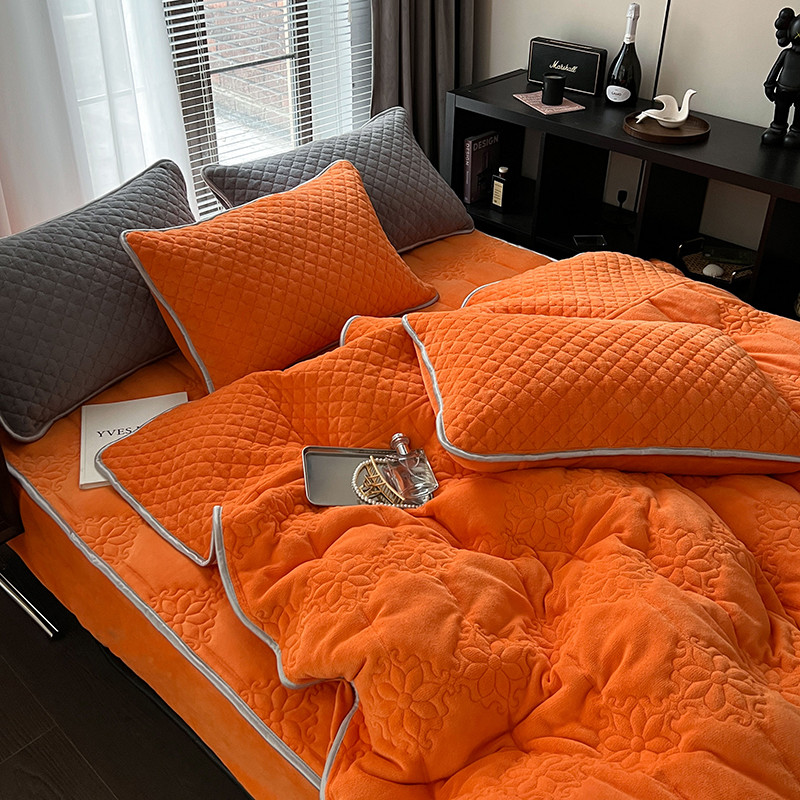 尊康家纺(原磊科) 2024新款加厚牛奶绒包边绗缝款四件套 橙