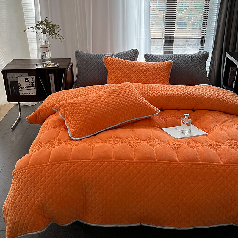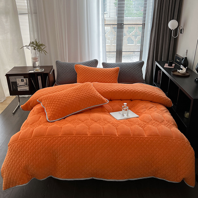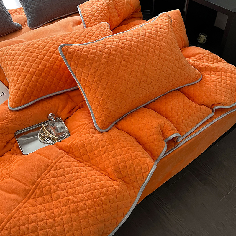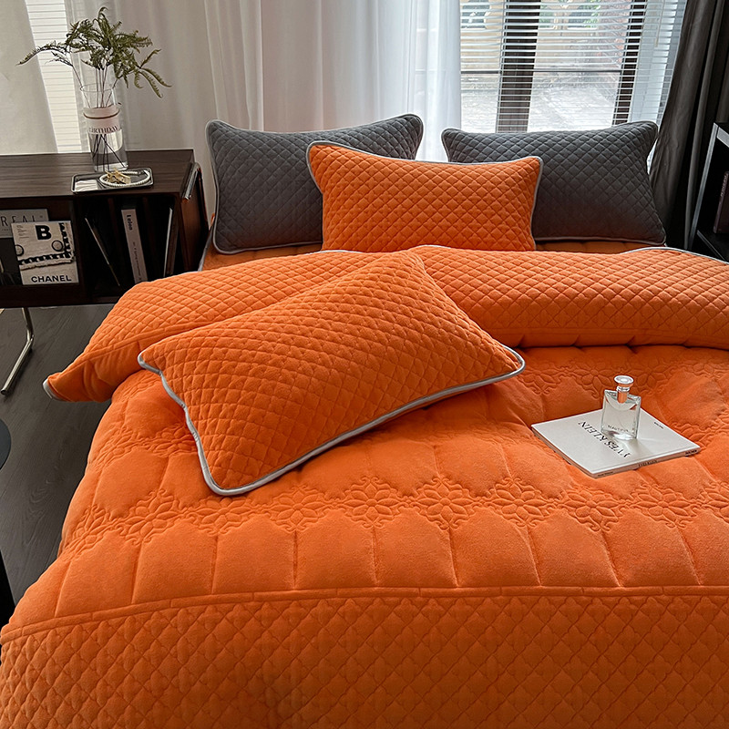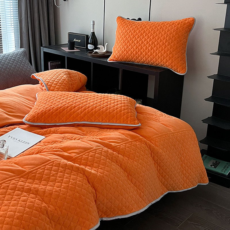 尊康家纺(原磊科) 2024新款加厚牛奶绒包边绗缝款四件套 橙