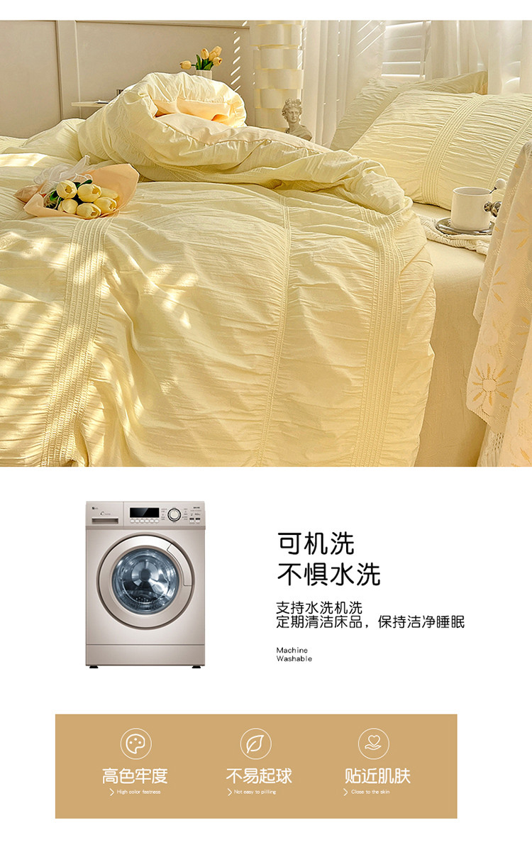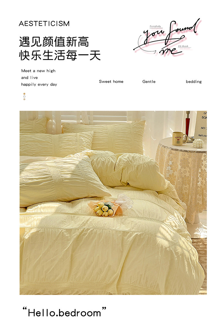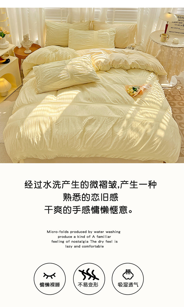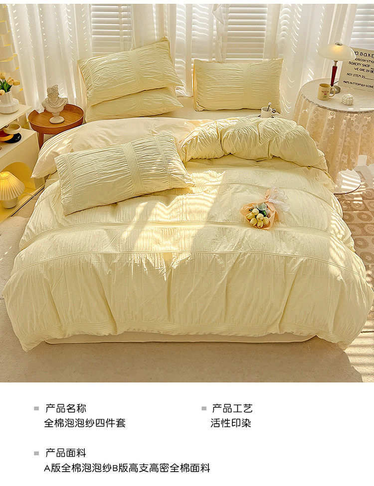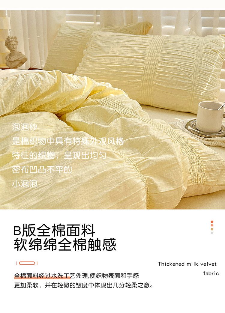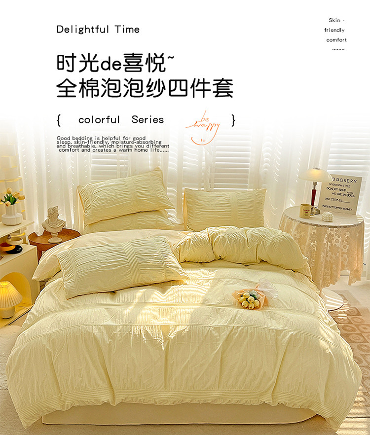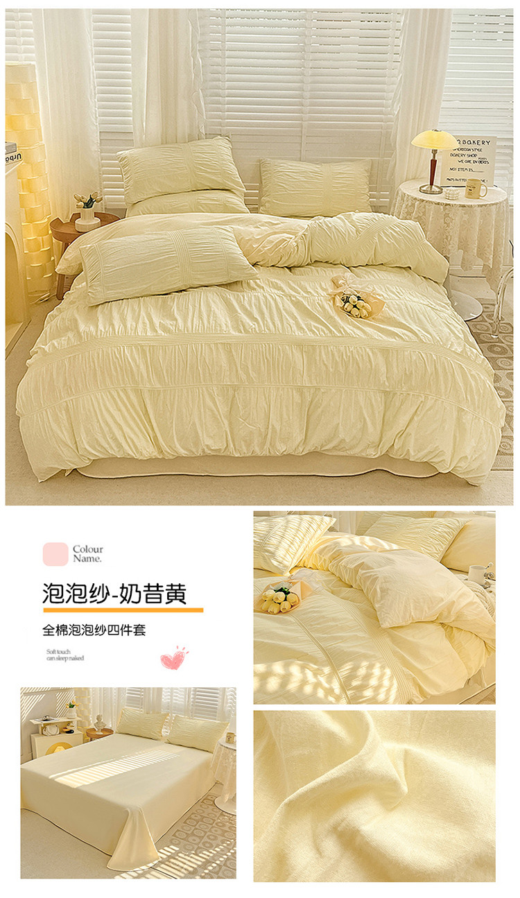 当前位置: 91家纺网 > 商品网购 > 床品套件 > 四件套 > 全棉普通四件套 > 娜娜 2022新款全棉泡泡纱四件套 泡泡纱-奶昔黄