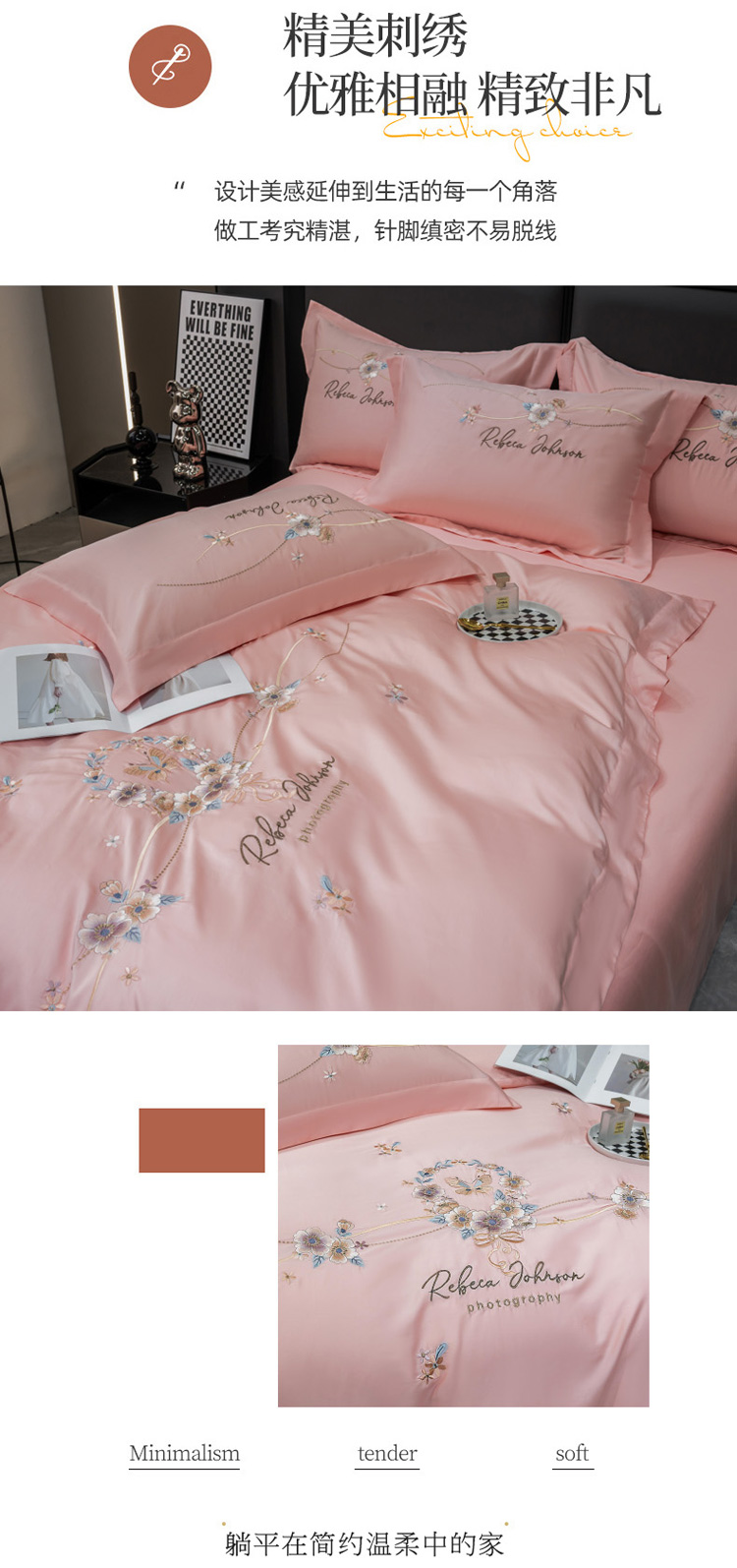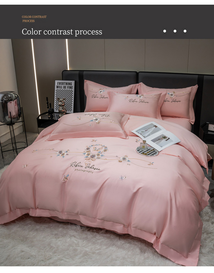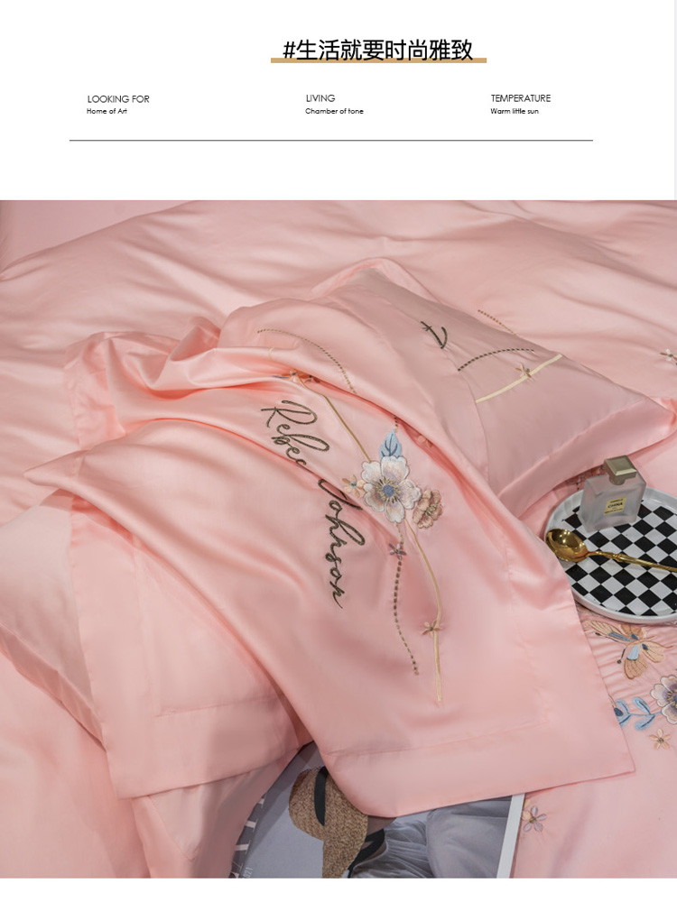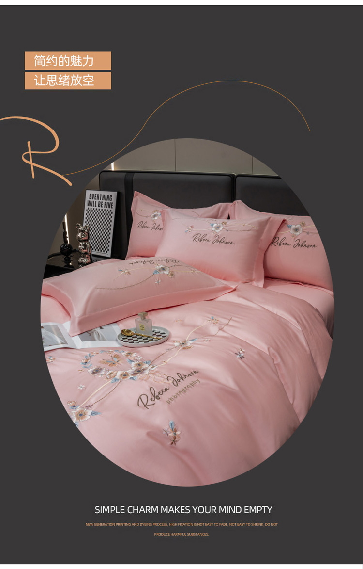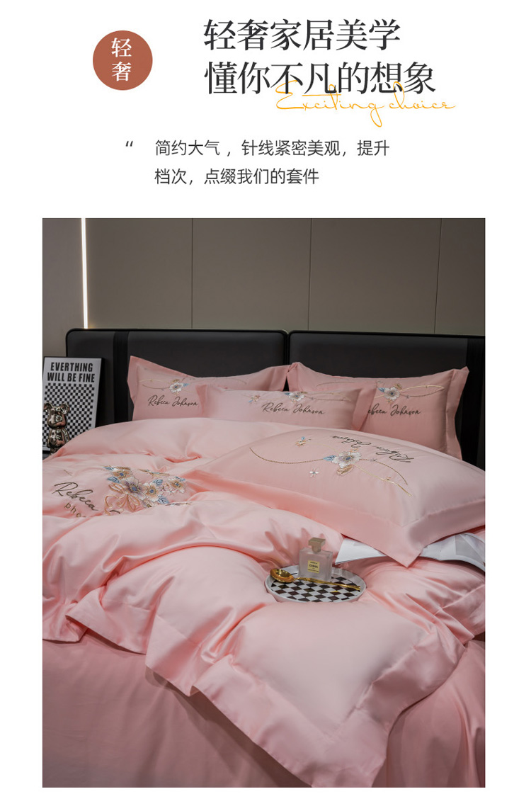 商品名称:绒世界 2022新款长绒棉刺绣四件套-浮生若梦 浮生若梦-粉色