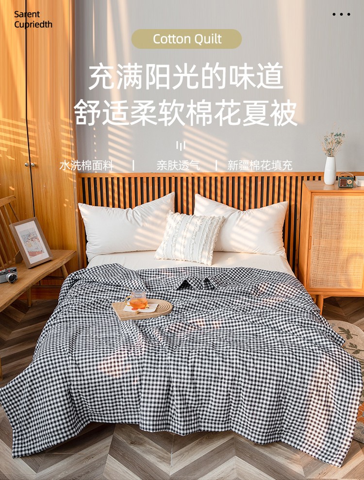 商品名称:鸣升 新款水洗棉新疆棉花夏凉被子被芯 小灰格