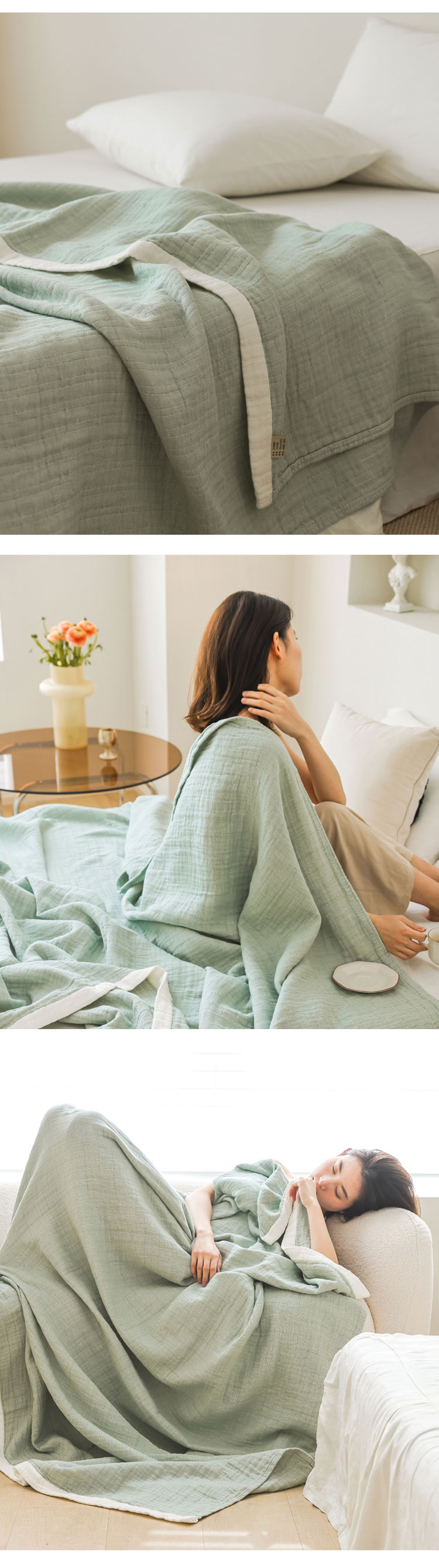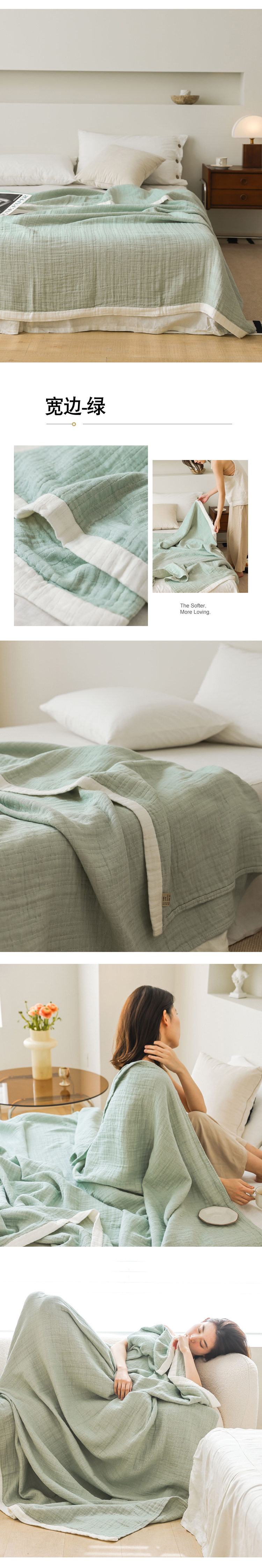 商品名称:朴尔 2023新款全棉80支四层纱布毛巾被 宽边-绿