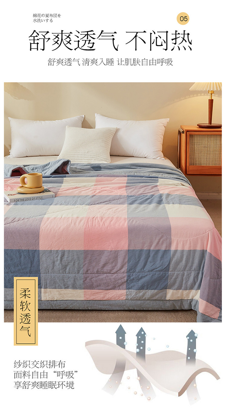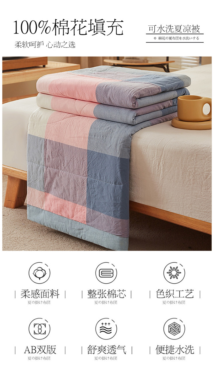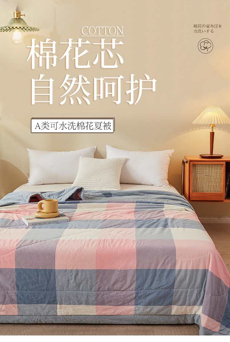 商品名称:悠米悠家 2025新款新疆棉花被棉花夏被水洗棉夏凉被 蓝大格