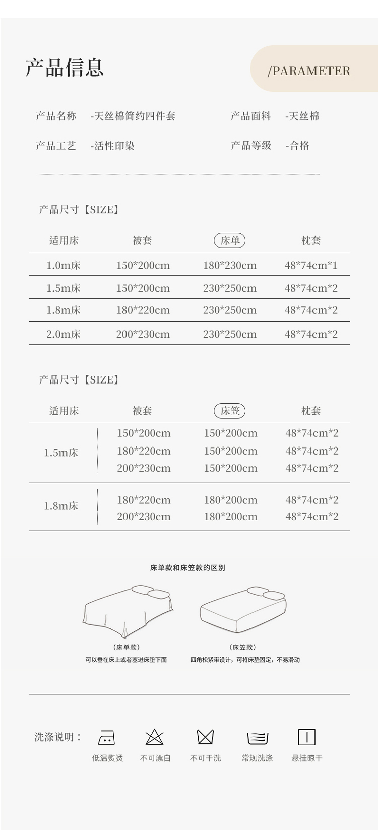 1.5m床笠款四件套(被套150*200cm) | ¥55.00 |